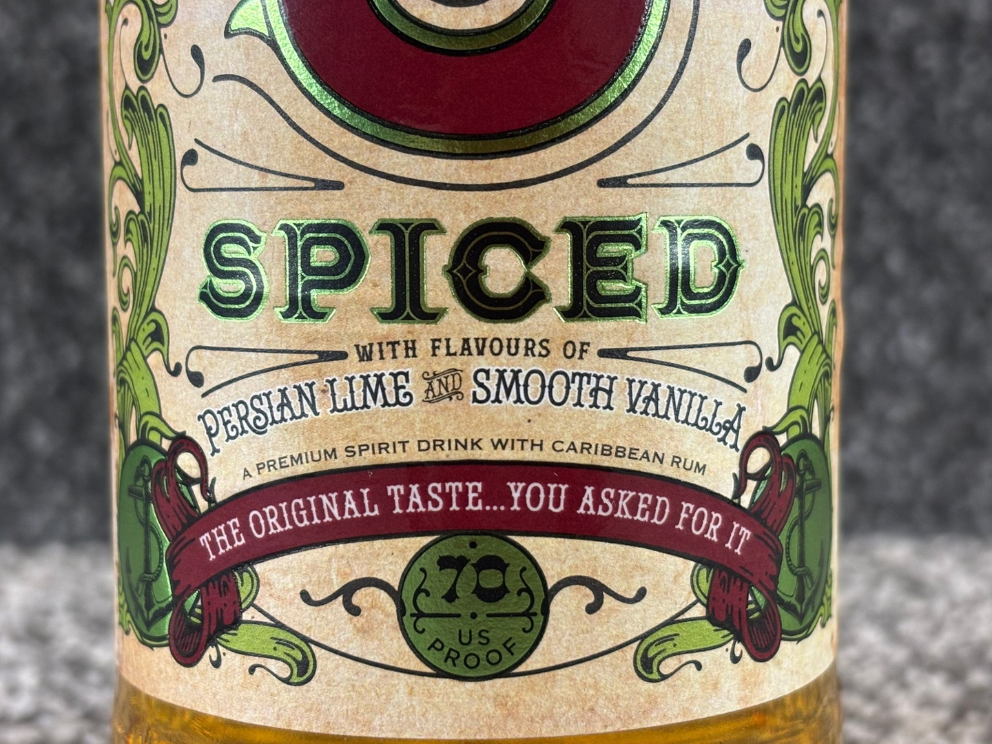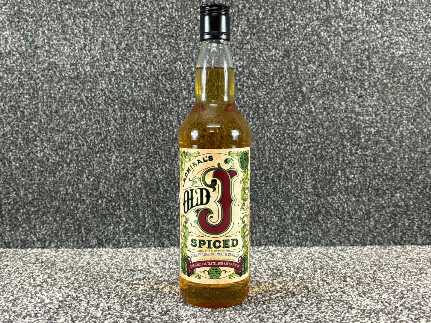 - > Bottle of Admiral's Old J Persian Lime & Smooth Vanilla Spiced Rum.