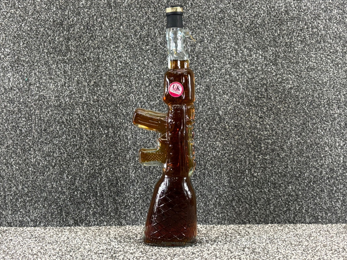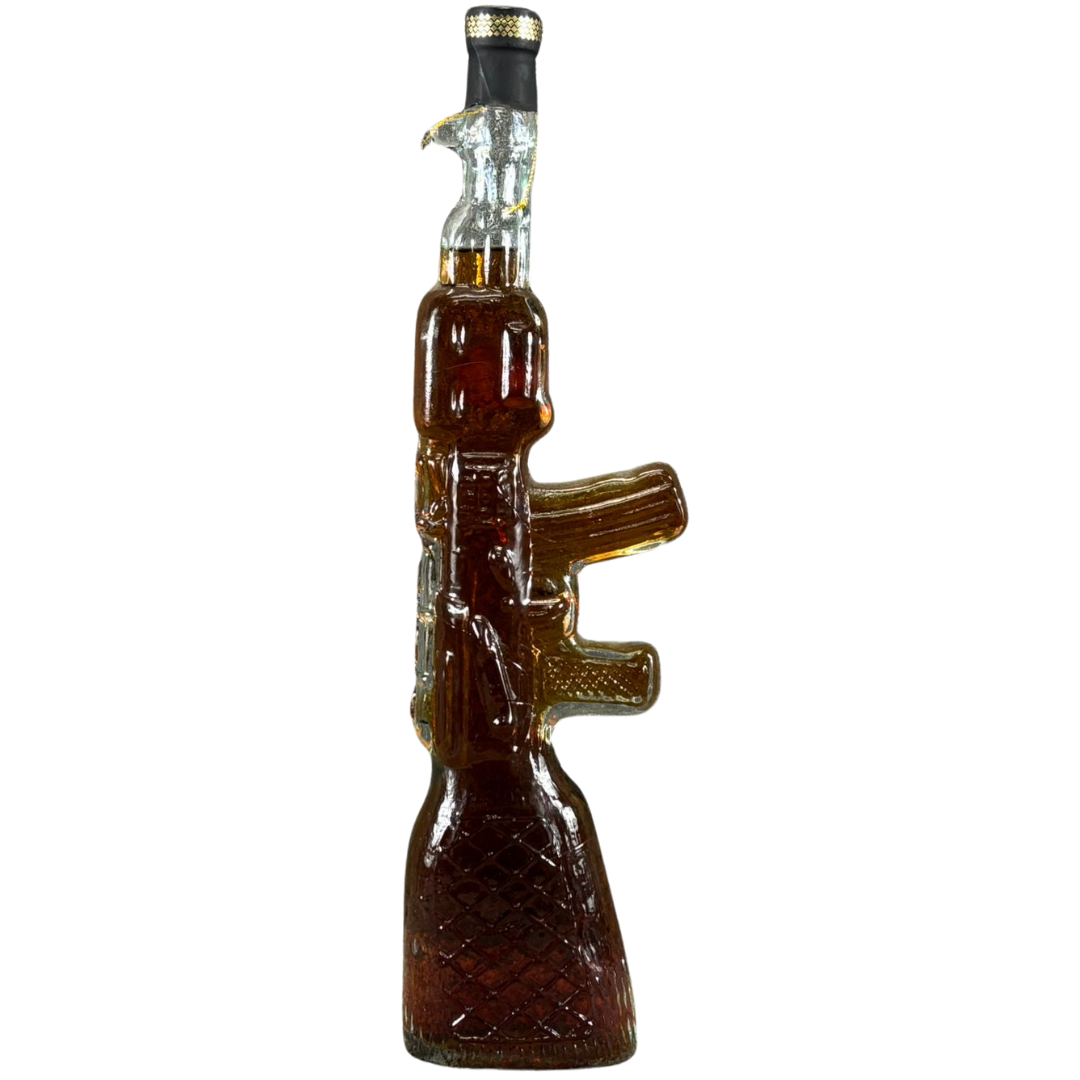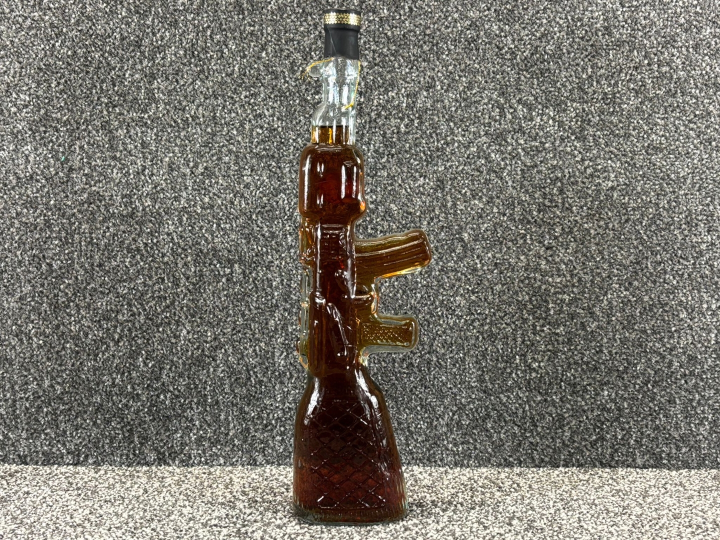 A 70cl bottle of AK-47 Whisky, presented in an instantly eye-catching rifle-shaped glass decanter that stands out as both a talking point and a collector’s piece. Filled with rich, amber whisky, this dramatic design makes it perfect for gifting, displaying on a home bar or adding a bold centrepiece to any drinks collection.