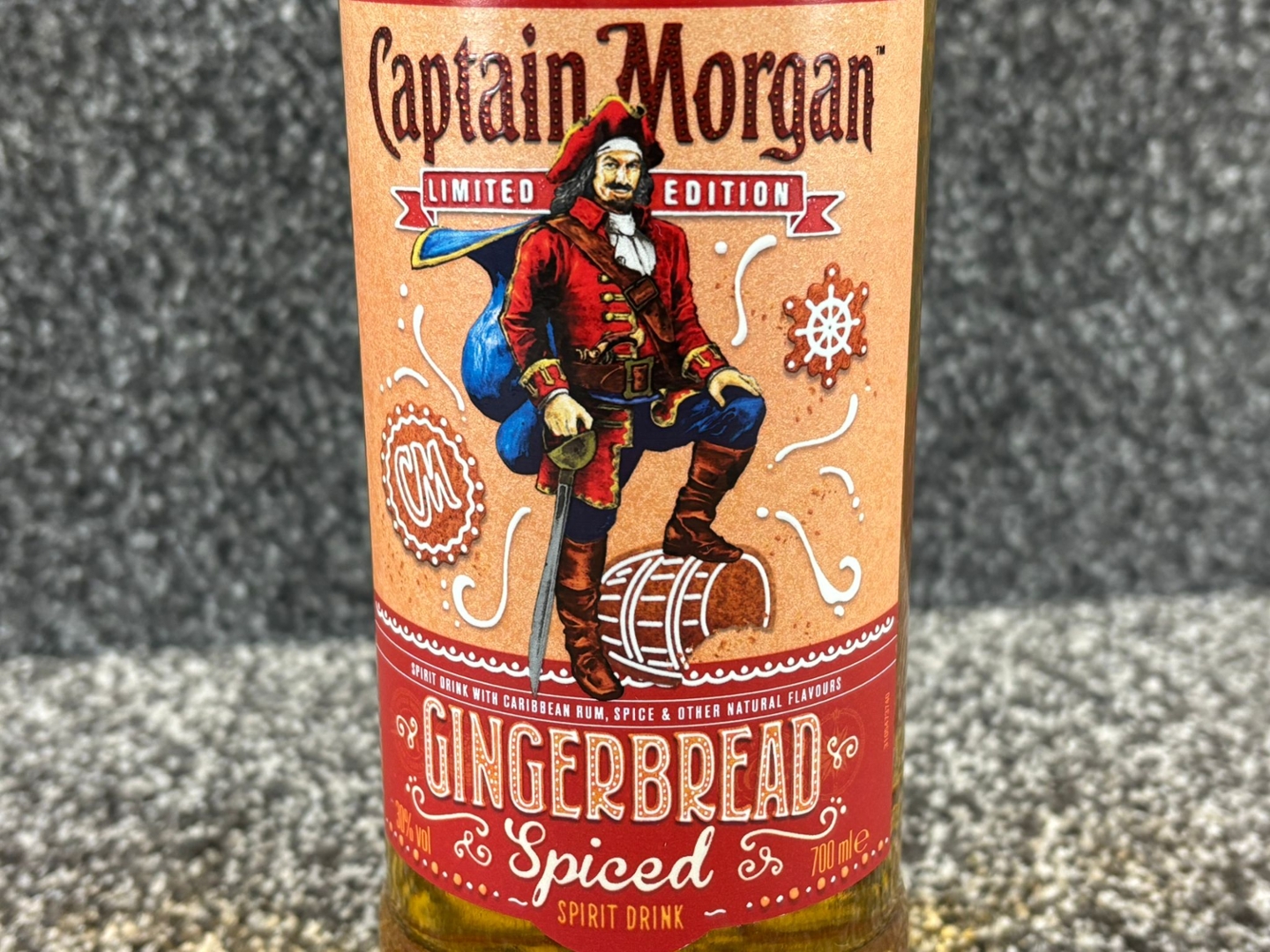 A bottle of Captain Morgan Gingerbread Spiced Rum. 700ml.
