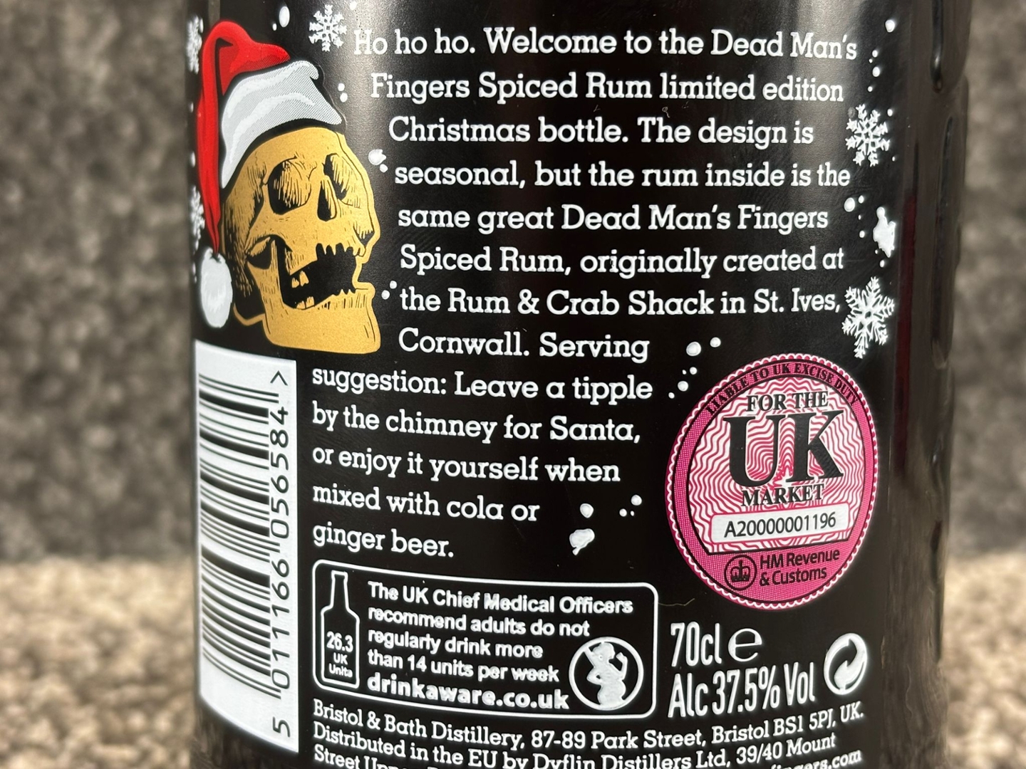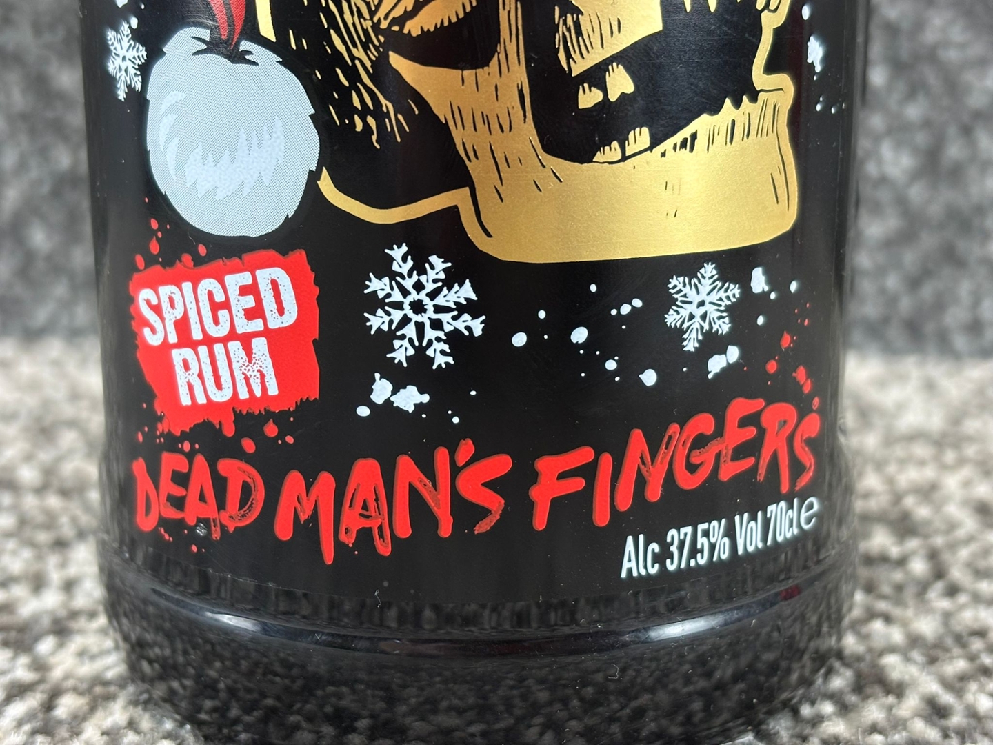 - > Bottle of Christmas Special Dead Man's Finger's Spiced Rum.