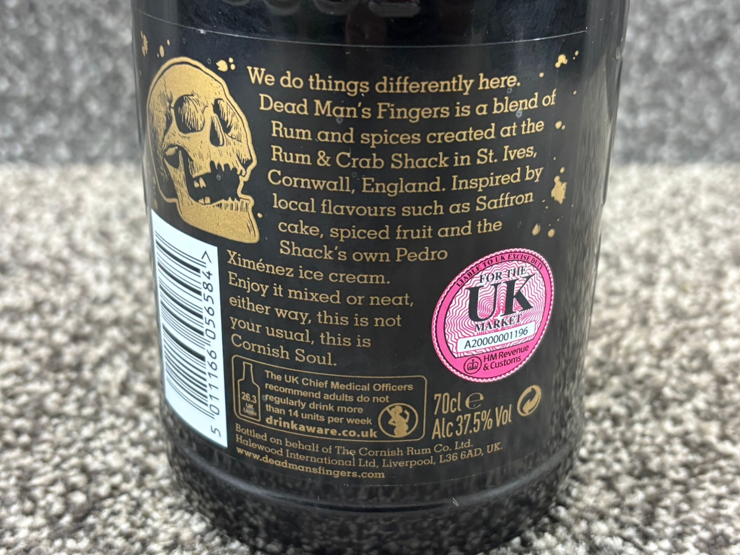 - > Bottle of Dead Man's Fingers Spiced Rum.