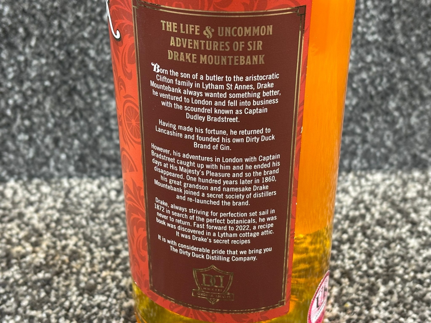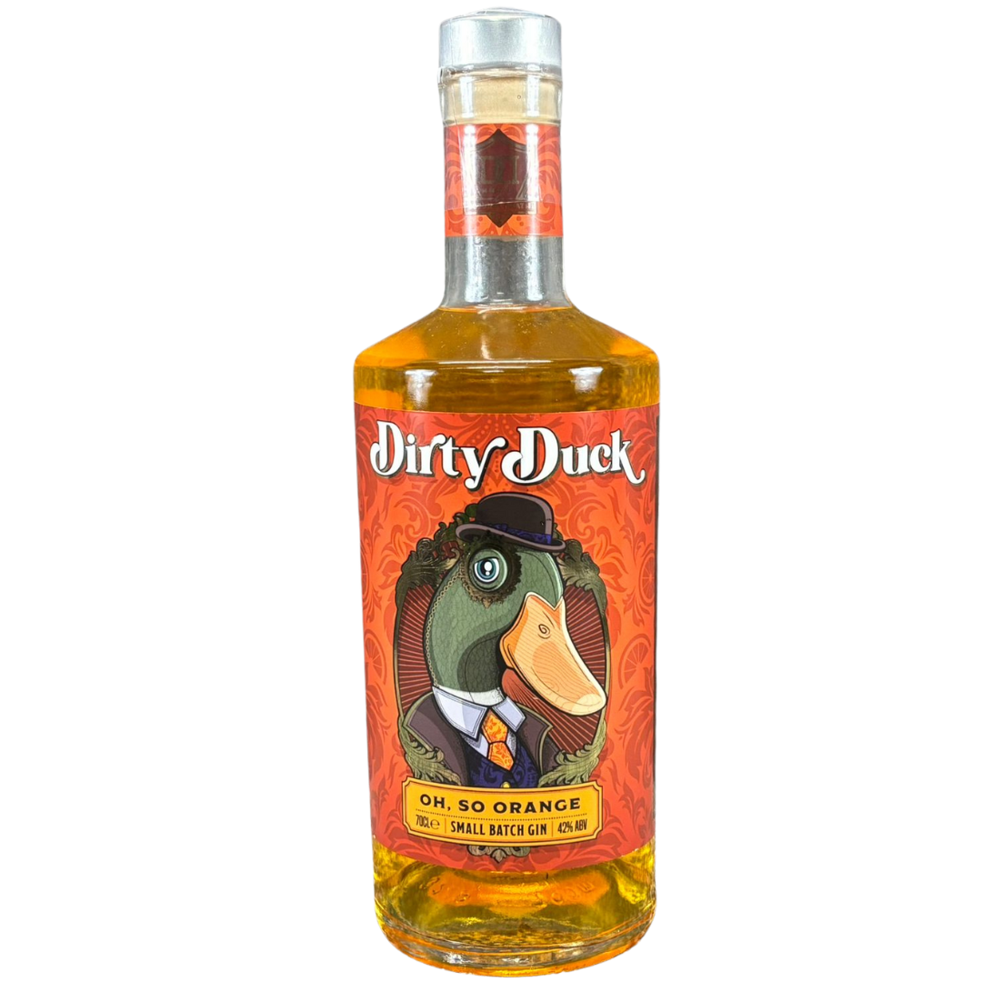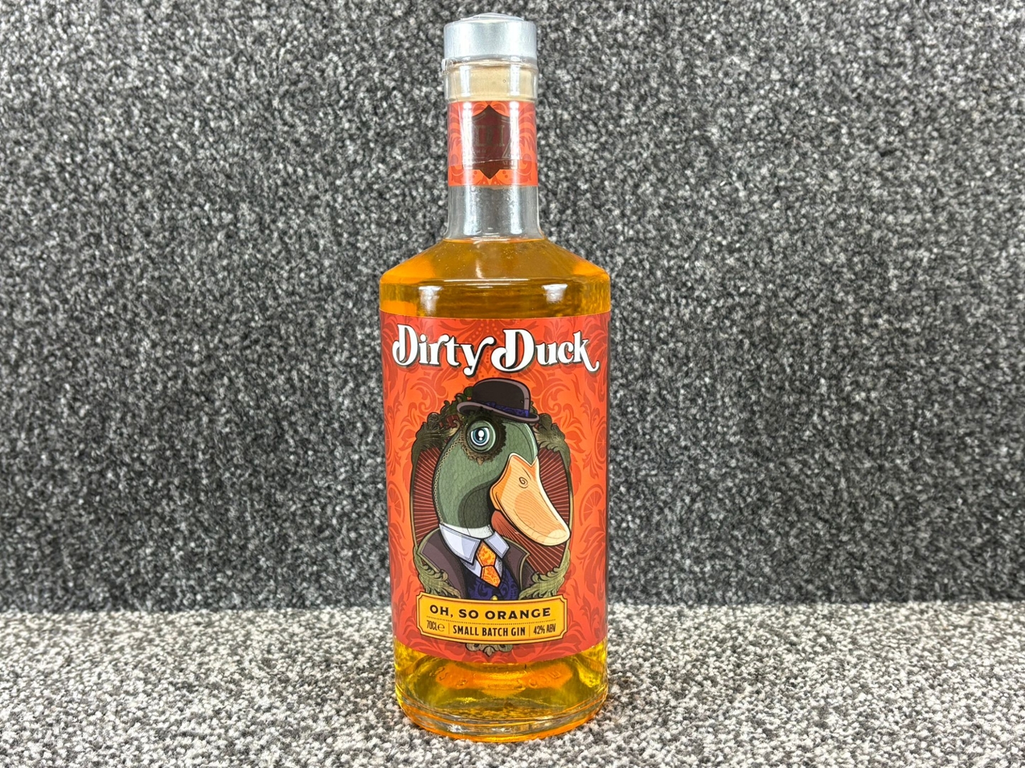 A bottle of Dirty Duck Oh, So Orange Gin. 70cl.