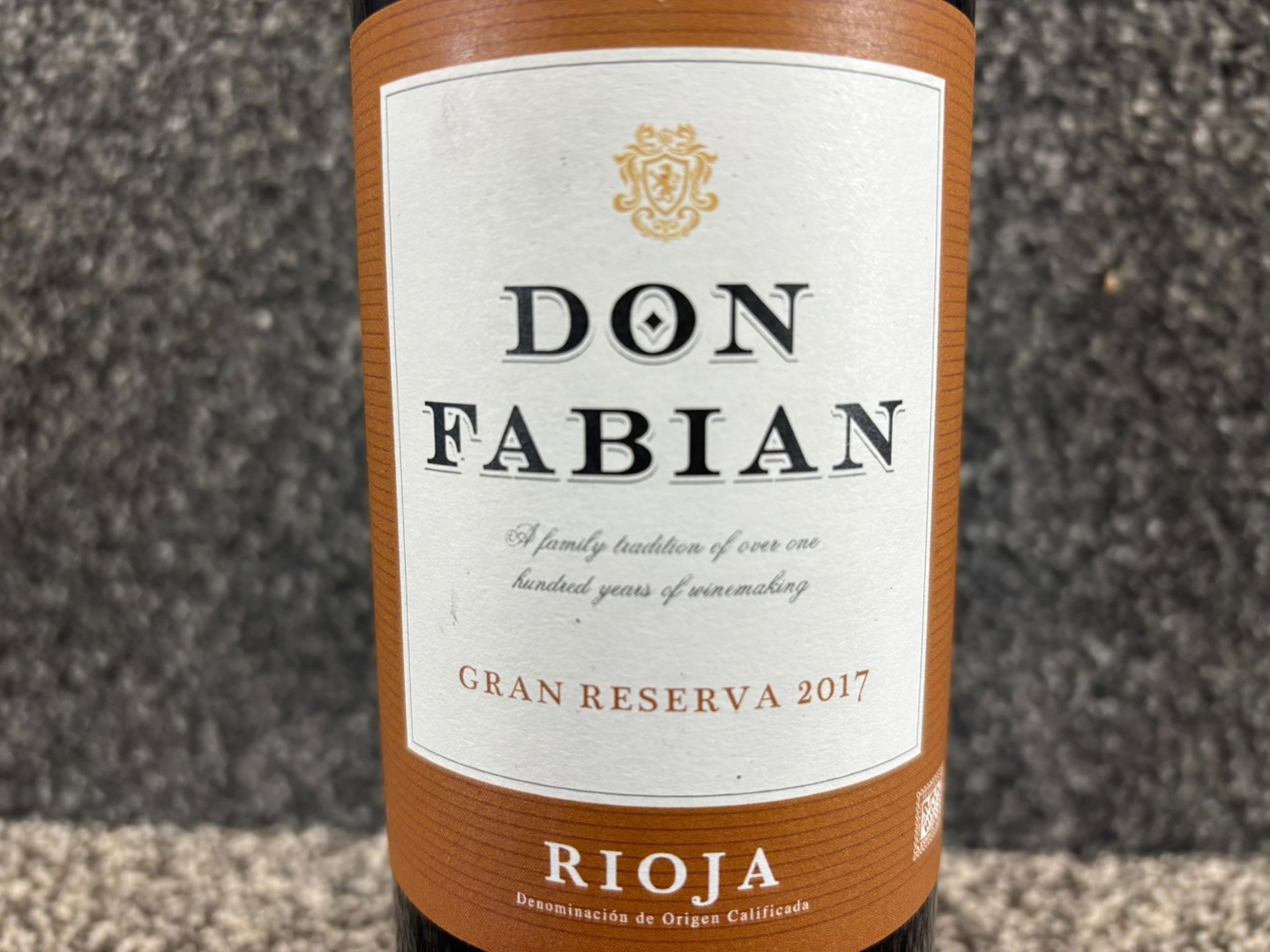 A bottle of 2017 Don Fabian Gran Reserva Rioja. 750ml.