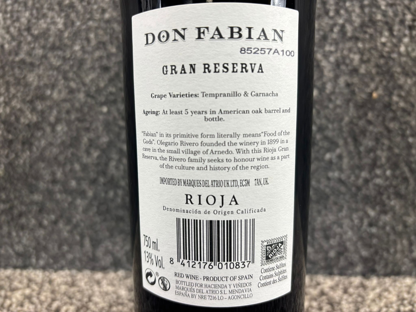 - > Bottle of Don Fabian Gran Reserva Rioja
