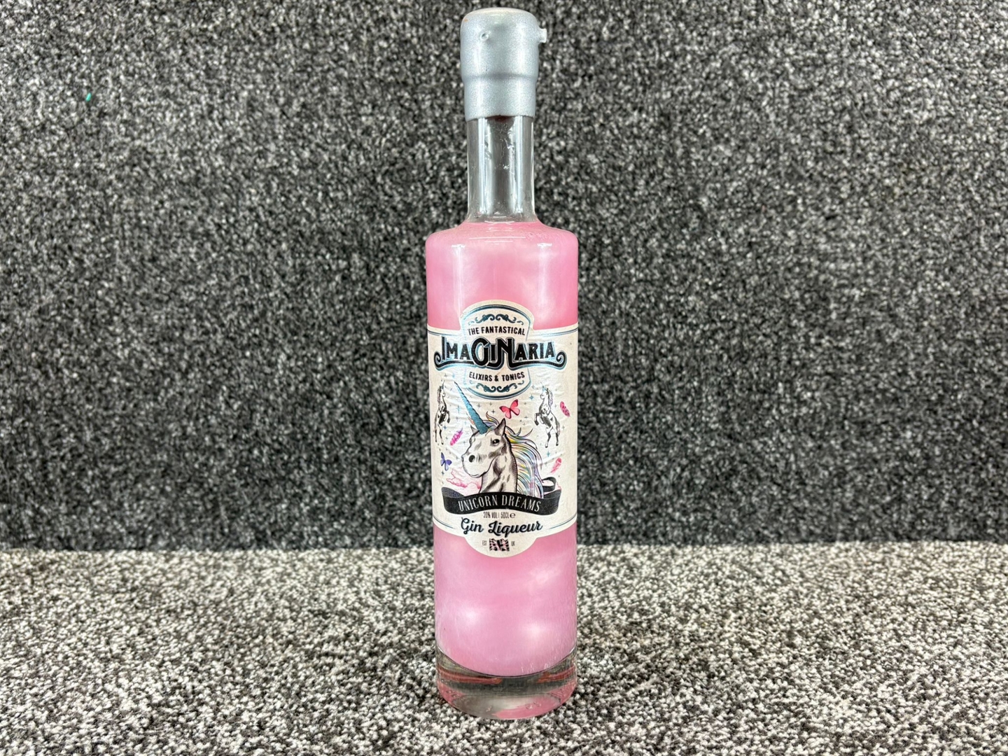 - > Bottle of Imaginaria Unicorn Dreams Gin Liqueur.