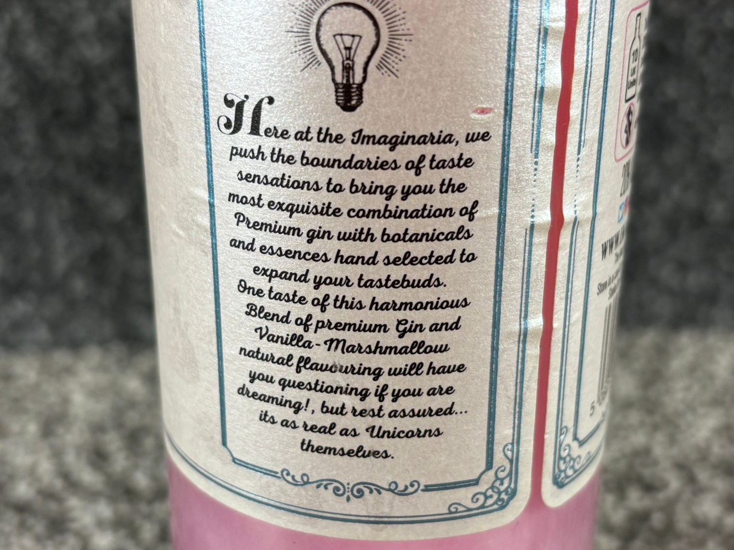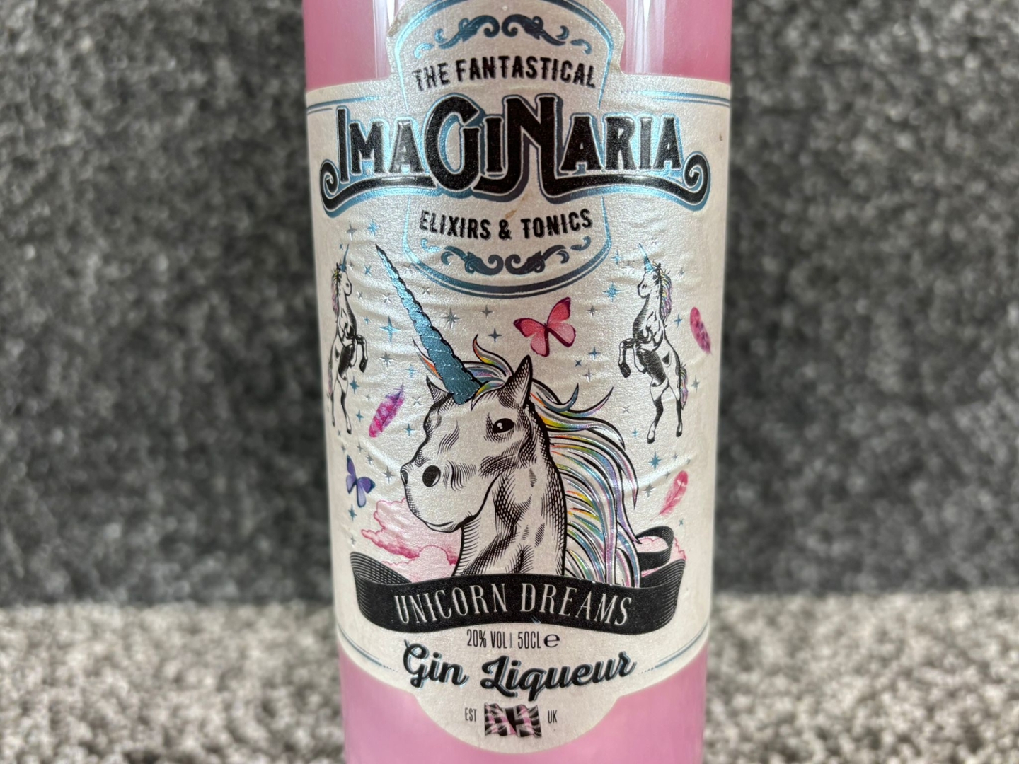 A 50cl bottle of Imaginaria Unicorn Dreams Gin Liqueur, a
