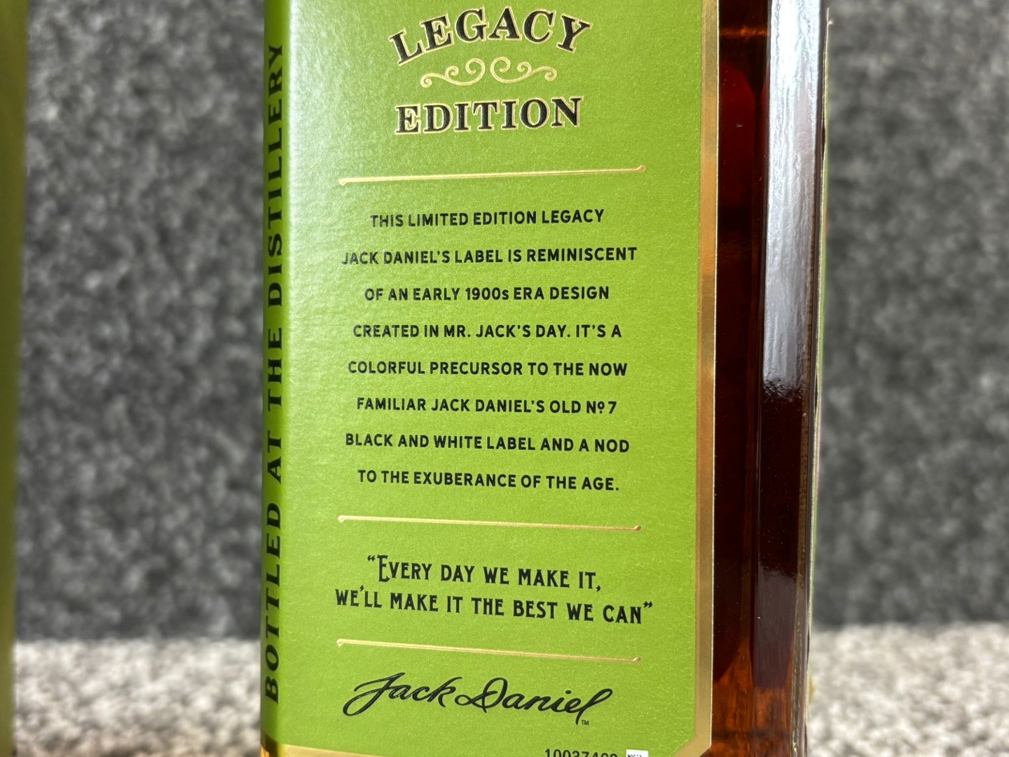- > Bottle of Jack Daniel's Legacy Edition 3 Tennessee Whiskey.