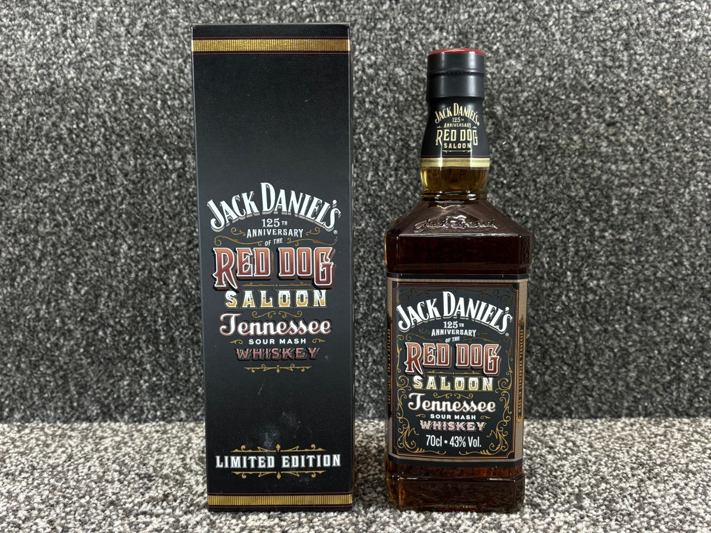 A bottle of Jack Daniel’s Red Dog Saloon Tennessee Whiskey