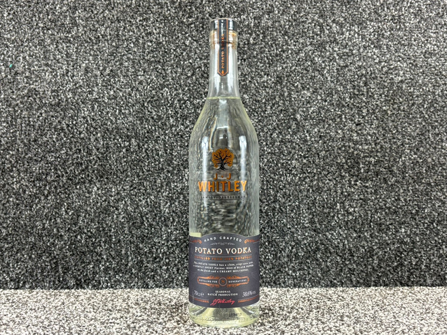 A bottle of J.J. Whitley Potato Vodka. 70cl.