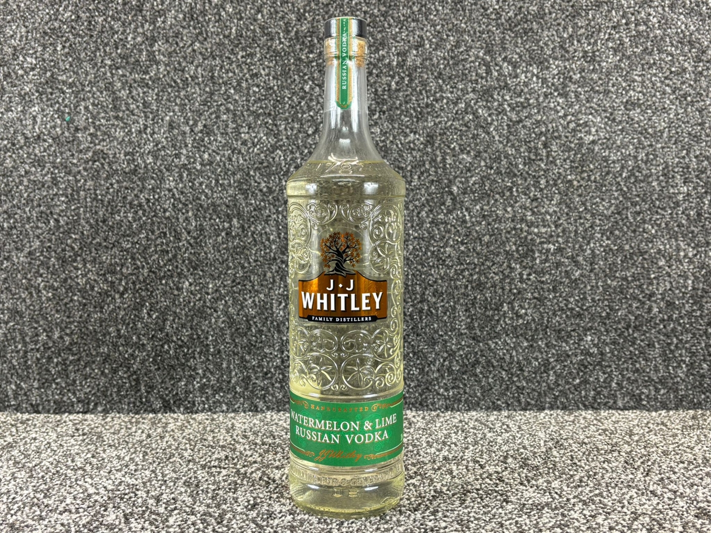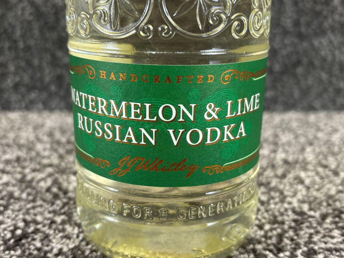 A bottle of J.J. Whitley Watermelon & Lime Russian Vodka. 1 litre.