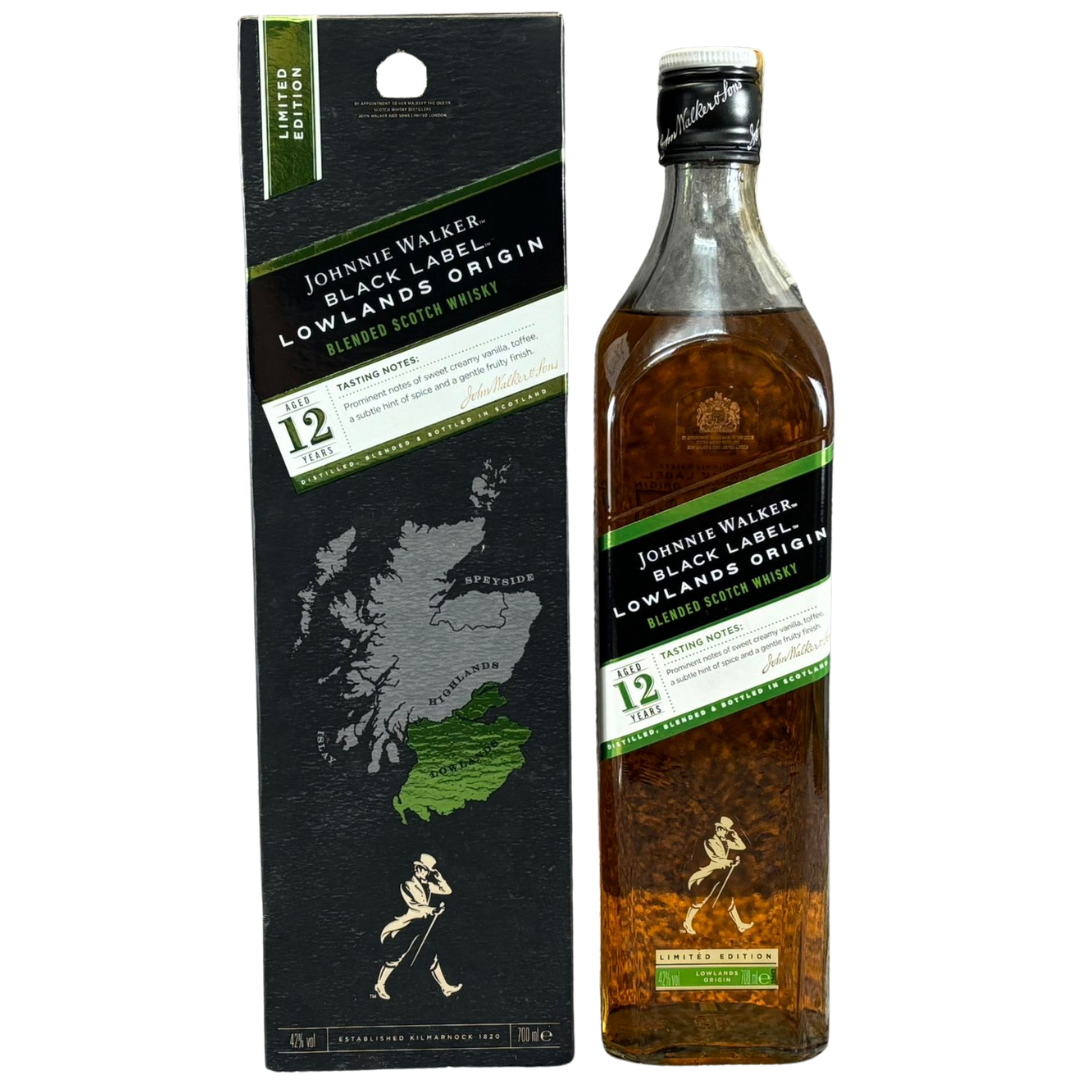 A 700ml Limited Edition Johnnie Walker Black Label Lowlands Origin release offers a rare and region-focused twist on one of the world’s most iconic Scotch whiskies. Presented in its original map-themed box, it highlights the Lowlands—one of Scotland’s historic whisky regions—making it an especially appealing bottle for collectors and Johnnie Walker enthusiasts. The packaging and label design proudly emphasise the whisky’s 12-year age statement and regional character.