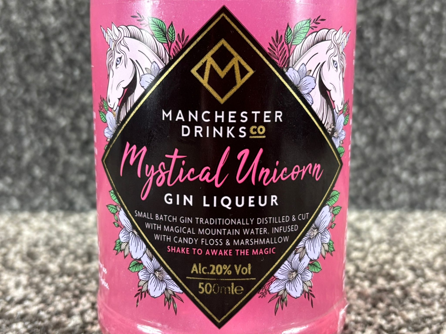 - > Bottle of Manchester Drinks Co Mystical Unicorn Gin Liqueur.