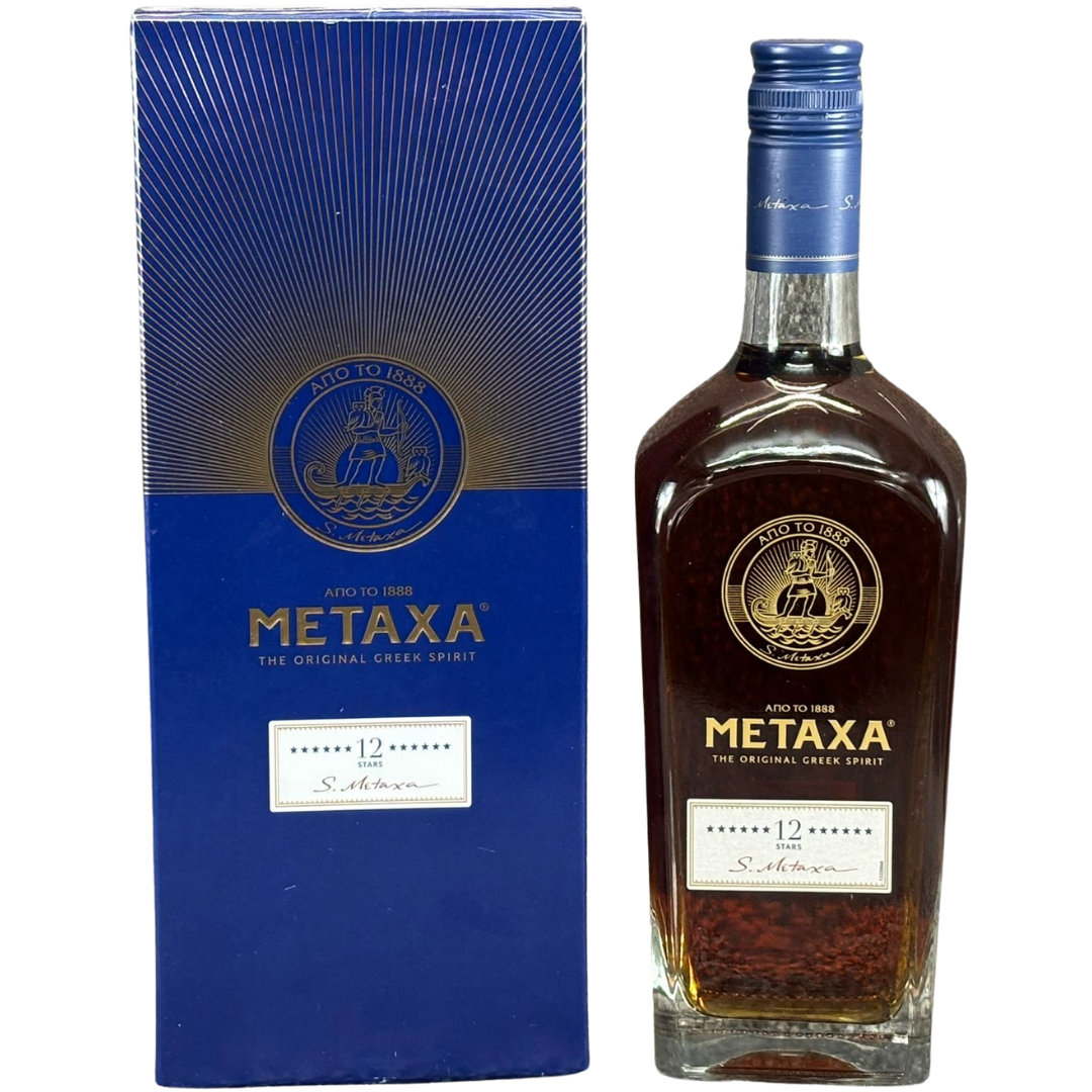 A 700ml bottle of Metaxa The Original Greek Spirit comes presented in an elegant navy and gold box, giving it an immediate sense of heritage and prestige. The radiant sunburst design and the iconic Metaxa emblem highlight its long-standing Greek legacy, dating back to 1888. The packaging alone signals quality, making it an excellent choice for gifting or for adding a touch of sophistication to any spirits collection.