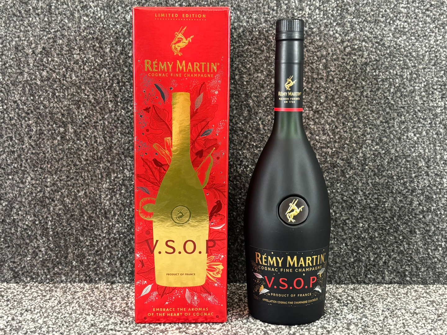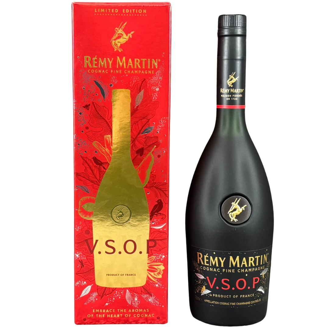A 700ml bottle of Rémy Martin VSOP Cognac Fine Champagne, beautifully presented in a striking limited-edition gift box. Crafted from the finest eaux-de-vie from the Grande and Petite Champagne regions, this cognac represents over a century of expertise and tradition.