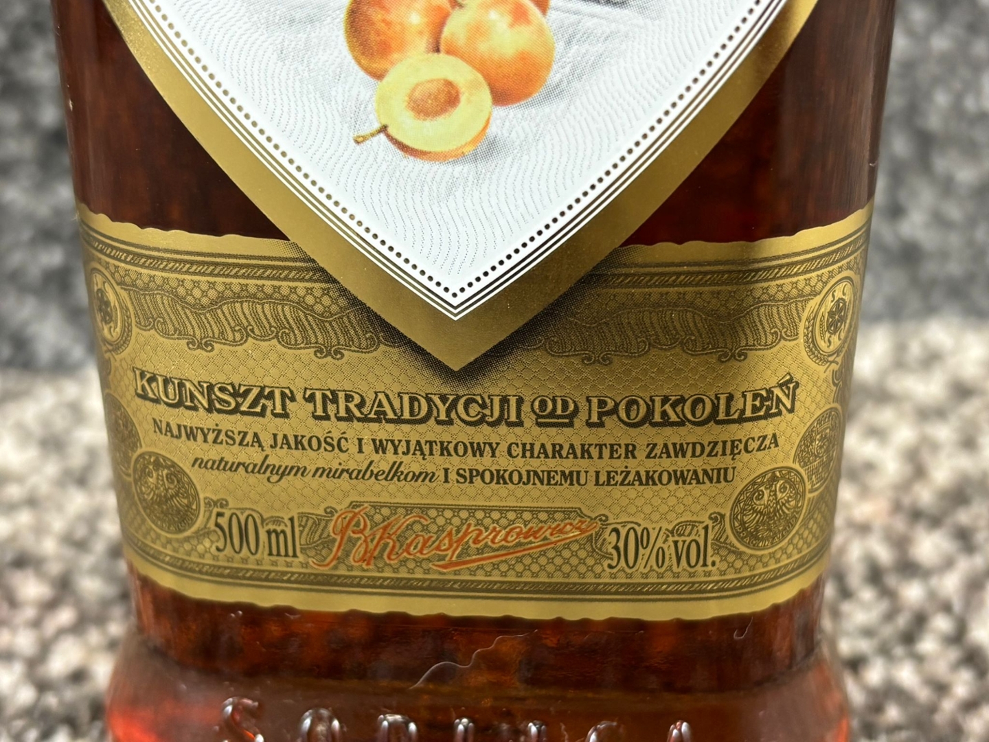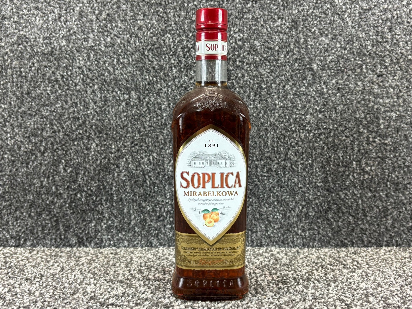 A bottle of Soplica Mirabelkowa Vodka Liqueur. 500ml.