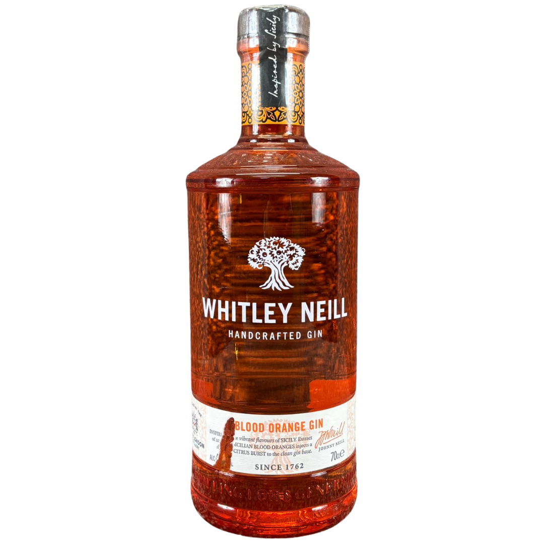 A bottle of Whitley Neill Blood Orange Gin in the 70cl presentation, offering a brilliantly vibrant take on modern gin craftsmanship. This striking release is inspired by the sun-soaked citrus groves of Sicily, and the bold orange hue instantly signals the bright, zesty character waiting inside. Whitley Neill’s handwritten-style detailing and embossed bottle design reinforce its handcrafted heritage, making it a standout choice for collectors and gin lovers alike.