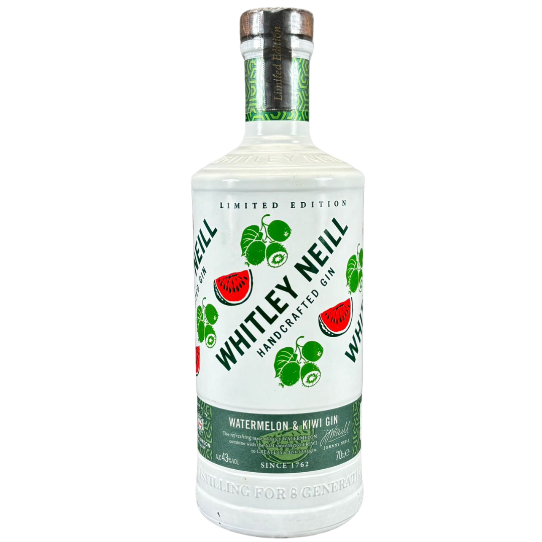 A 70cl bottle of Whitley Neill Watermelon & Kiwi Gin delivers a fresh, summery twist on the brand’s handcrafted style, presented in a clean white bottle decorated with vibrant fruit imagery. Instantly eye-catching, this limited-edition release captures the juicy sweetness of ripe watermelon paired with the bright, tangy lift of kiwi, creating a contemporary gin that stands out both on the shelf and in the glass.