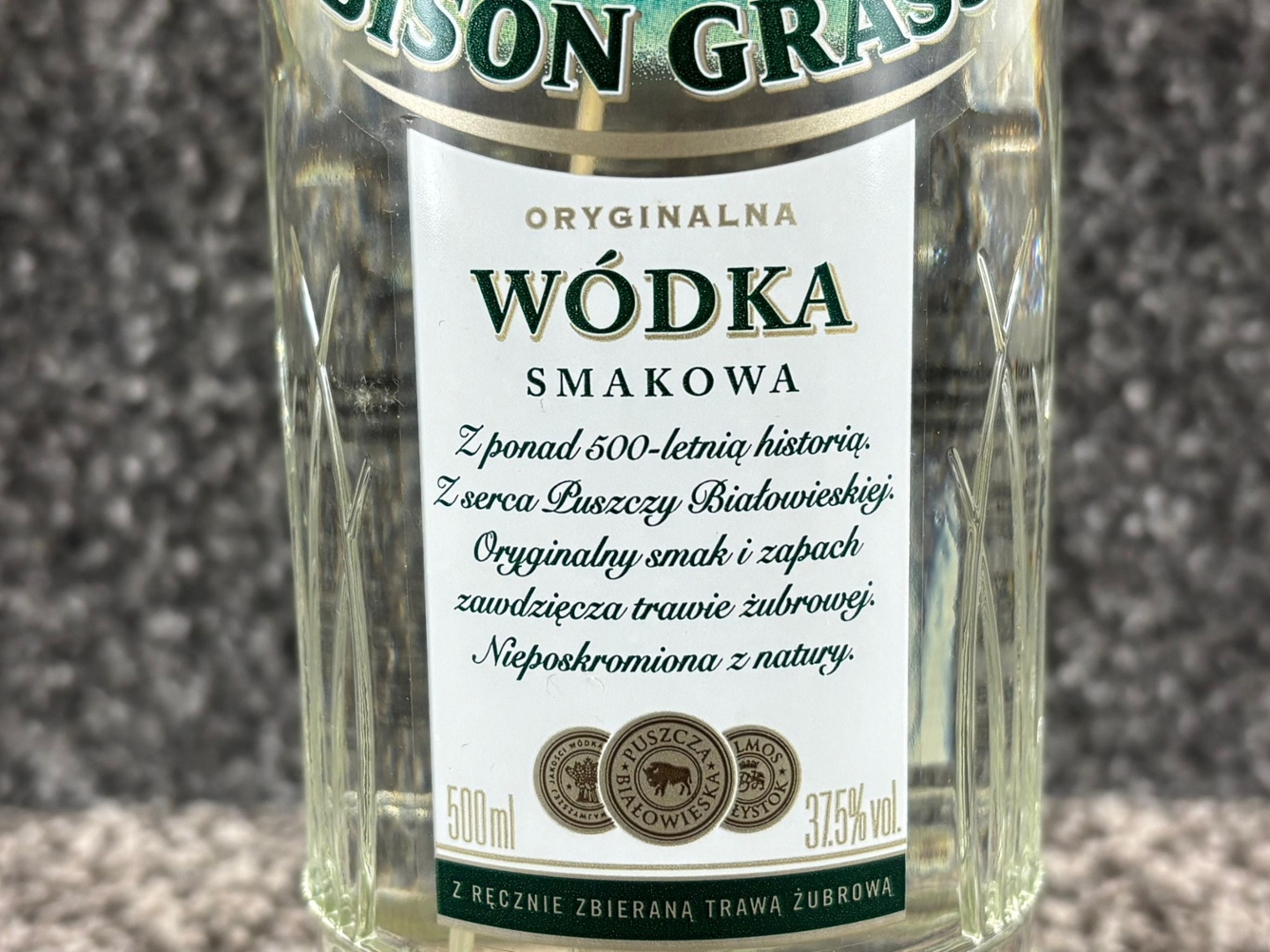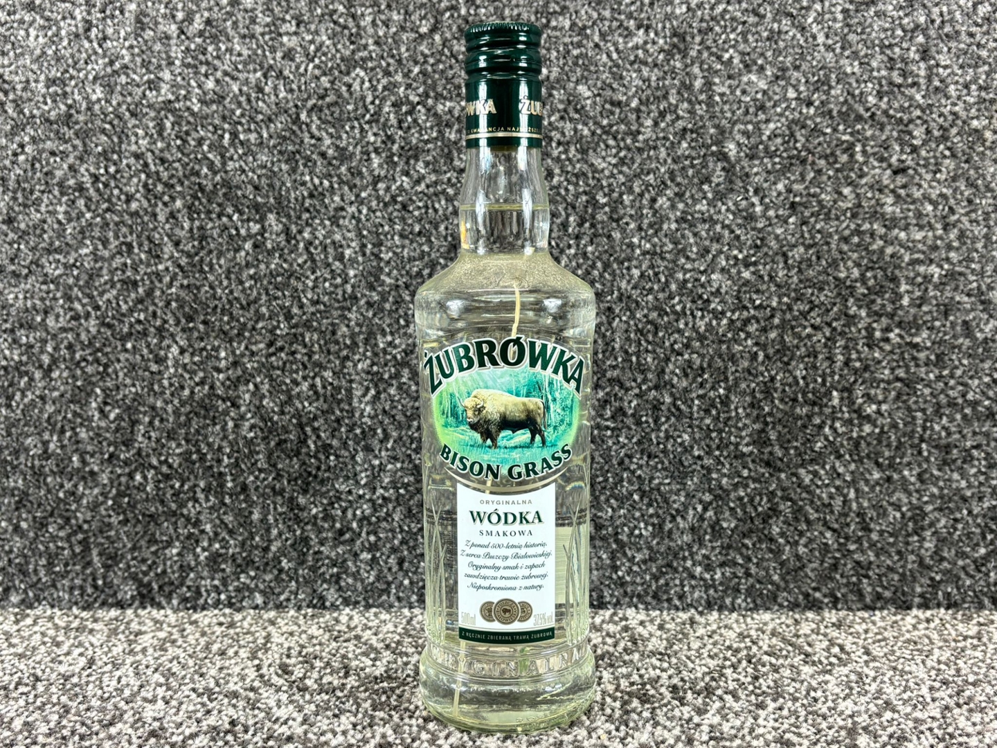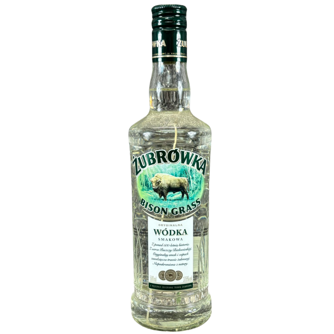 A bottle of Zubrowka Bison Grass Vodka. 500ml.