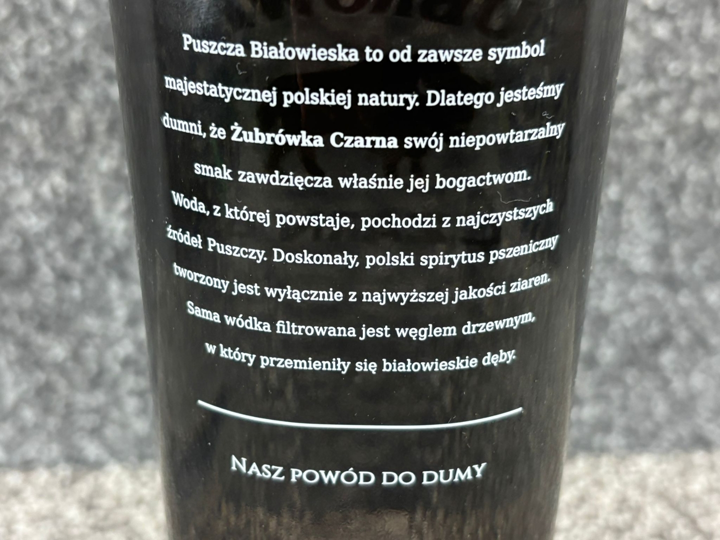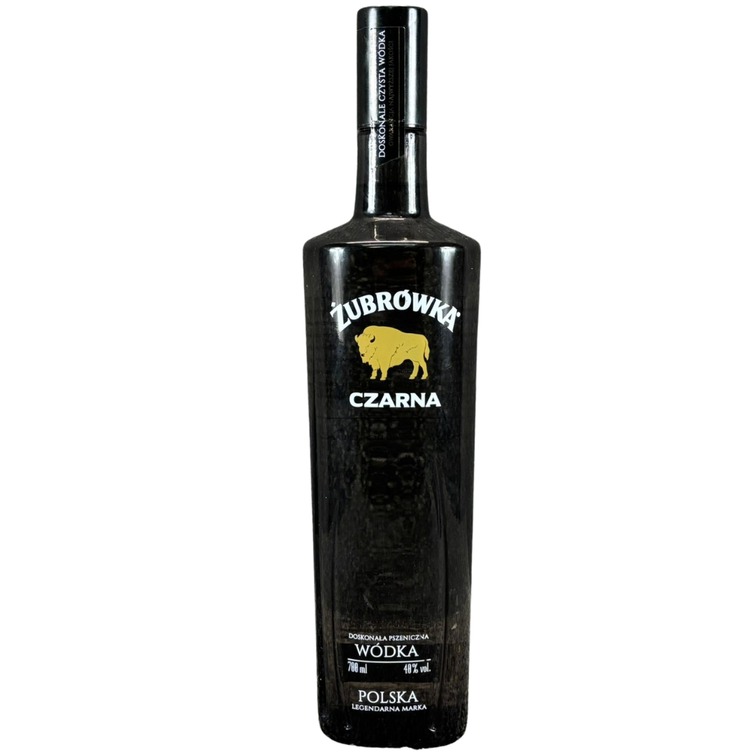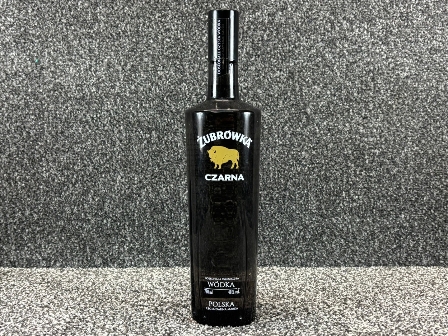A 700ml bottle of Żubrówka Czarna Vodka, a premium
