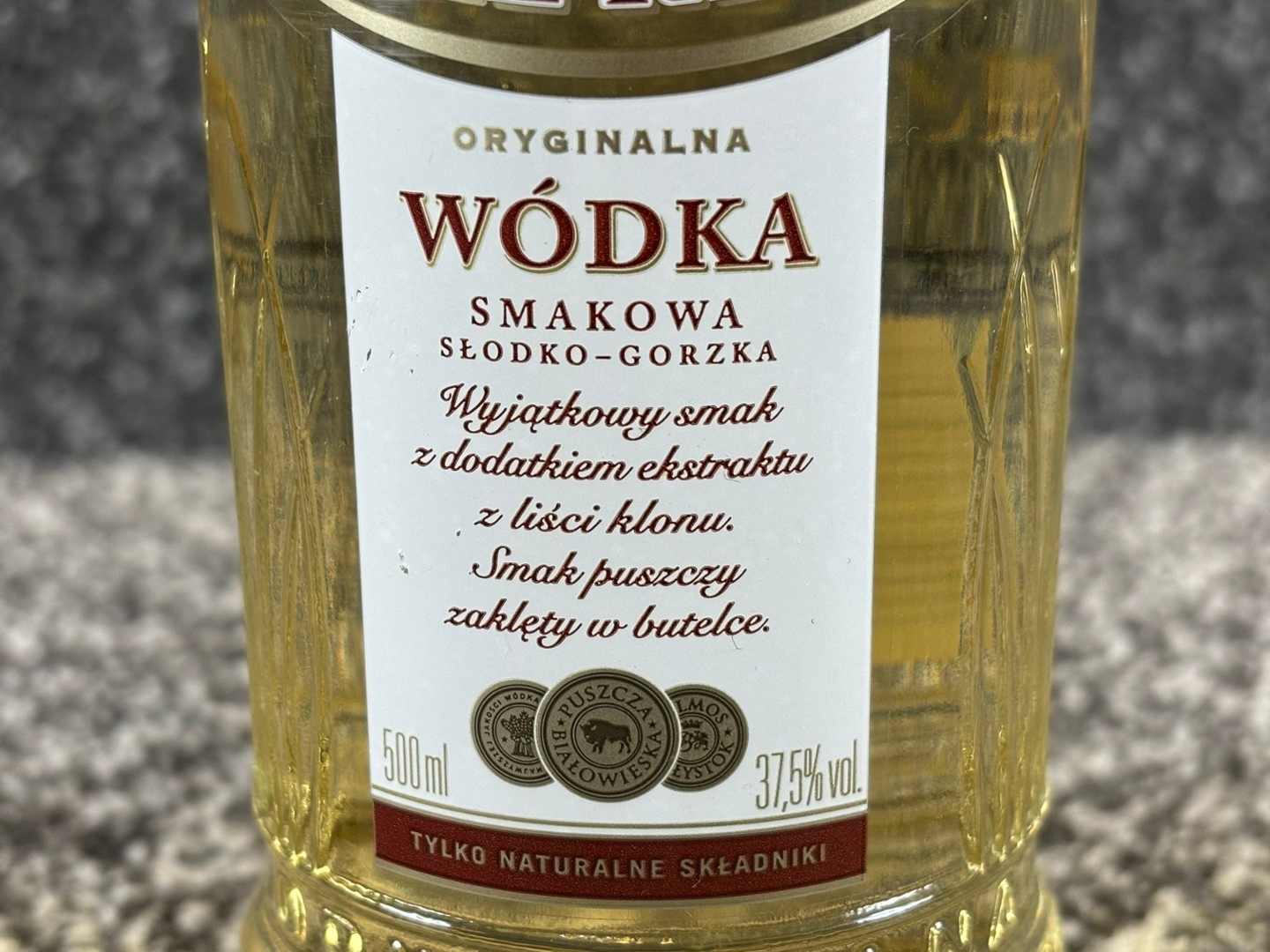 A bottle of Zubrowka Liscie Klonu. 500ml.