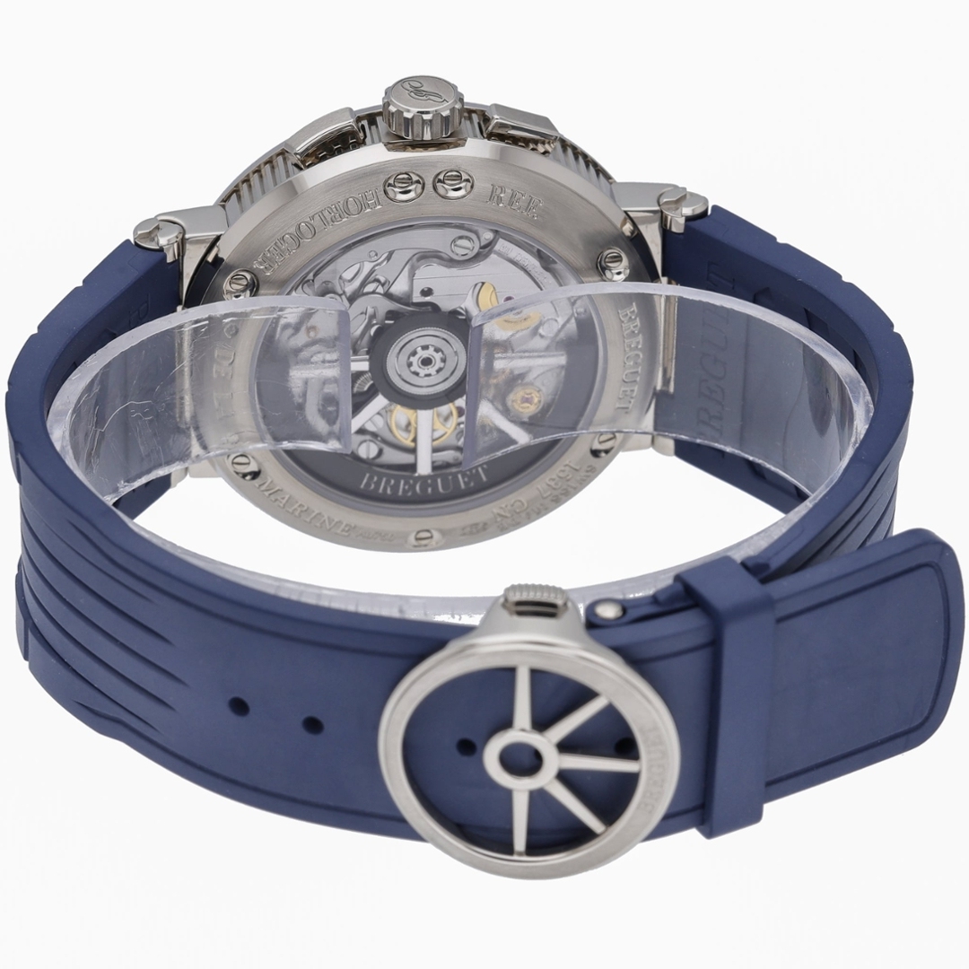 Breguet Marine Chronographe Watch, Blue Rubber Strap with an 18ct White Gold Case & Clasp on a Blue Dial