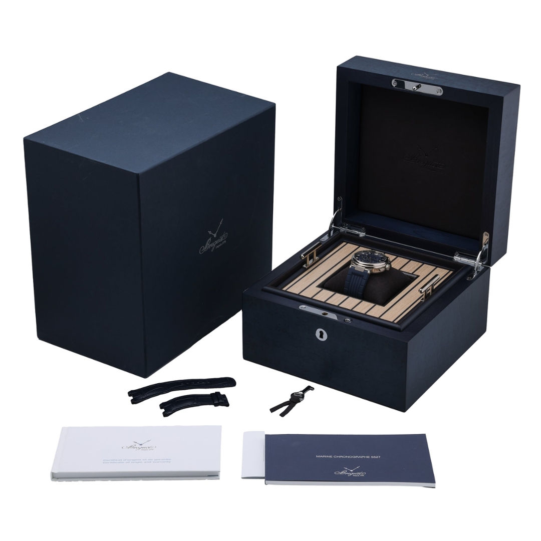 This 2023 example is offered in immaculate condition and is supplied boxed and certified with its original Breguet paperwork. Covered by a 12-month WLC warranty, this Marine Chronographe is a sophisticated sports-luxury piece, combining precious-metal construction, contemporary design, and the unmistakable heritage of Breguet.