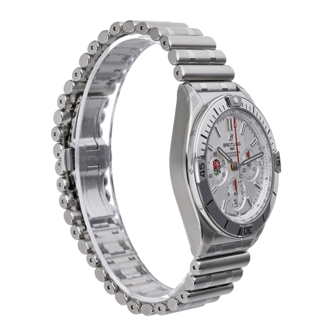 A Breitling Chronomat B01 42 England Rugby Limited Edition Watch, Stainless Steel on a Silver Dial