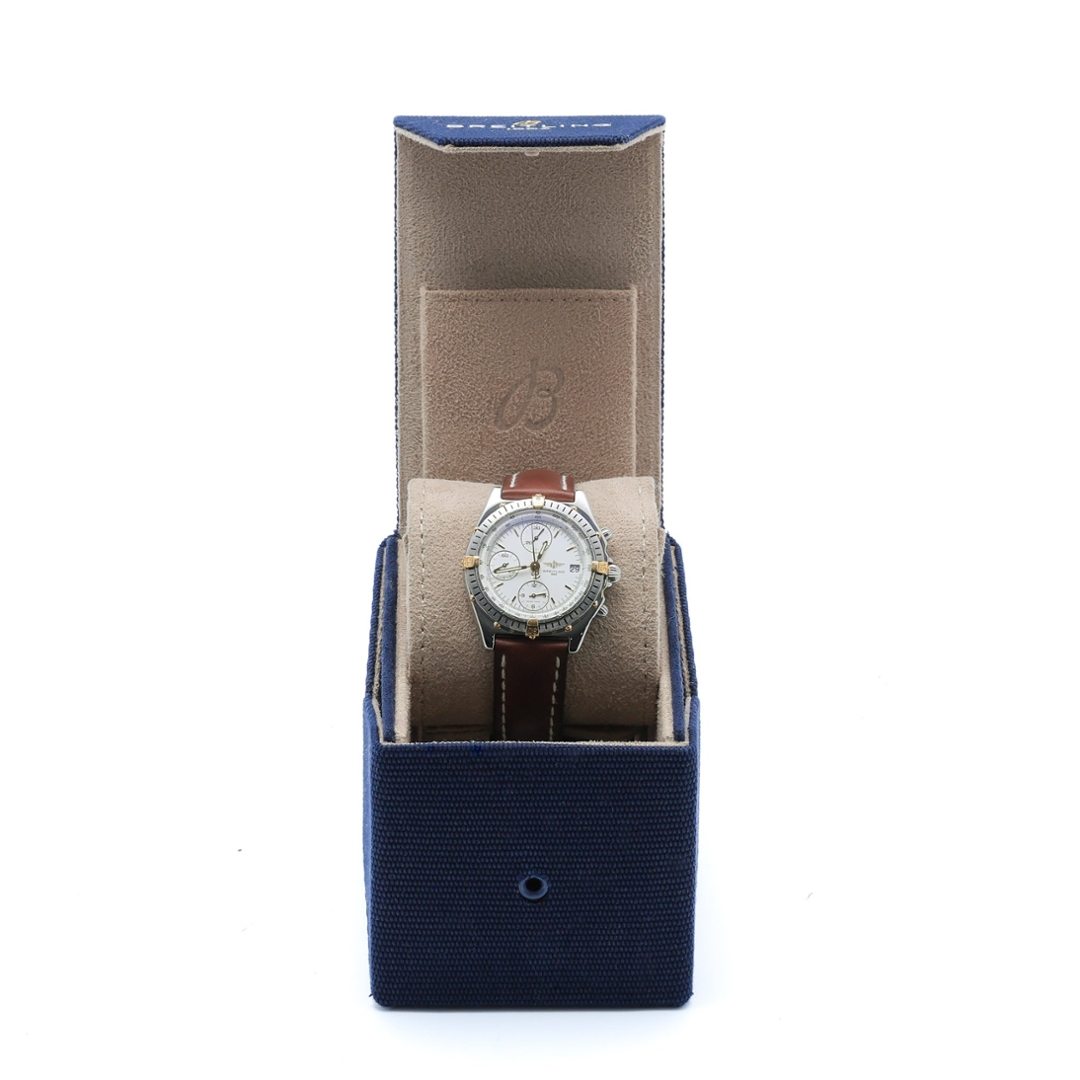 In good condition, this example includes its presentation box, authenticity paperwork, and a 12-month WLC warranty. The D13047 remains a highly regarded reference among collectors, admired for its early-generation design and robust build quality. A superb opportunity to own a piece of Breitling history, combining mechanical excellence with timeless bi-metal elegance.