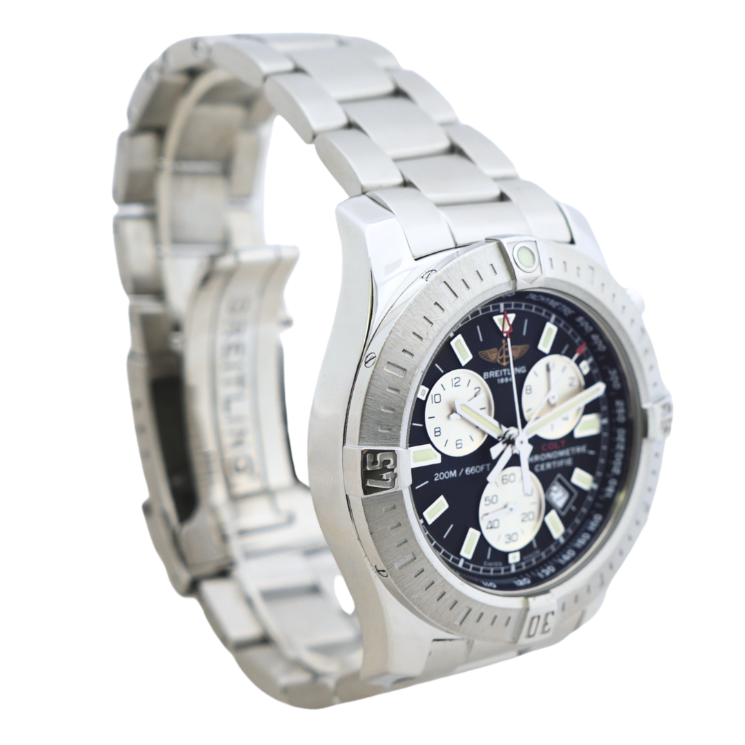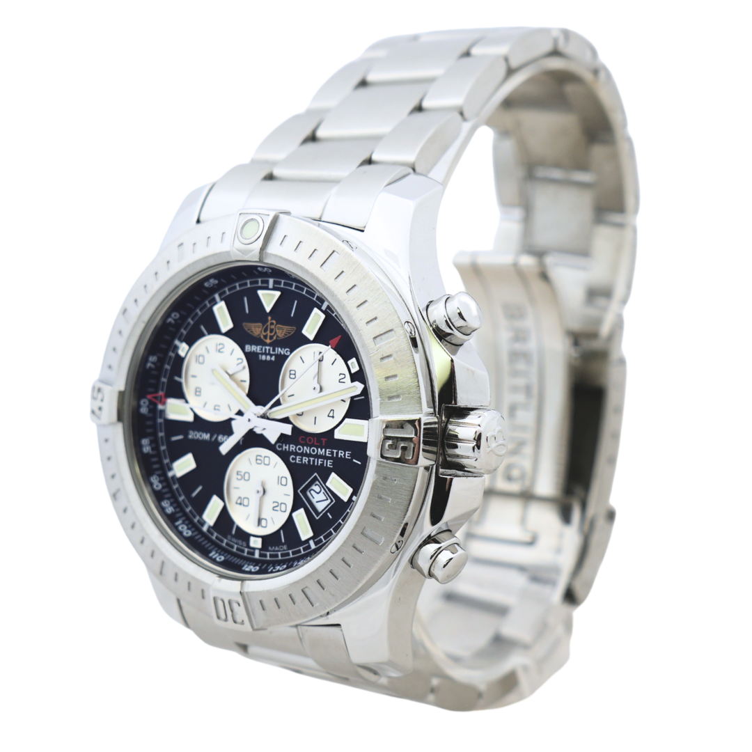 A Breitling Colt Chronograph Watch, Stainless Steel on a Black Dial