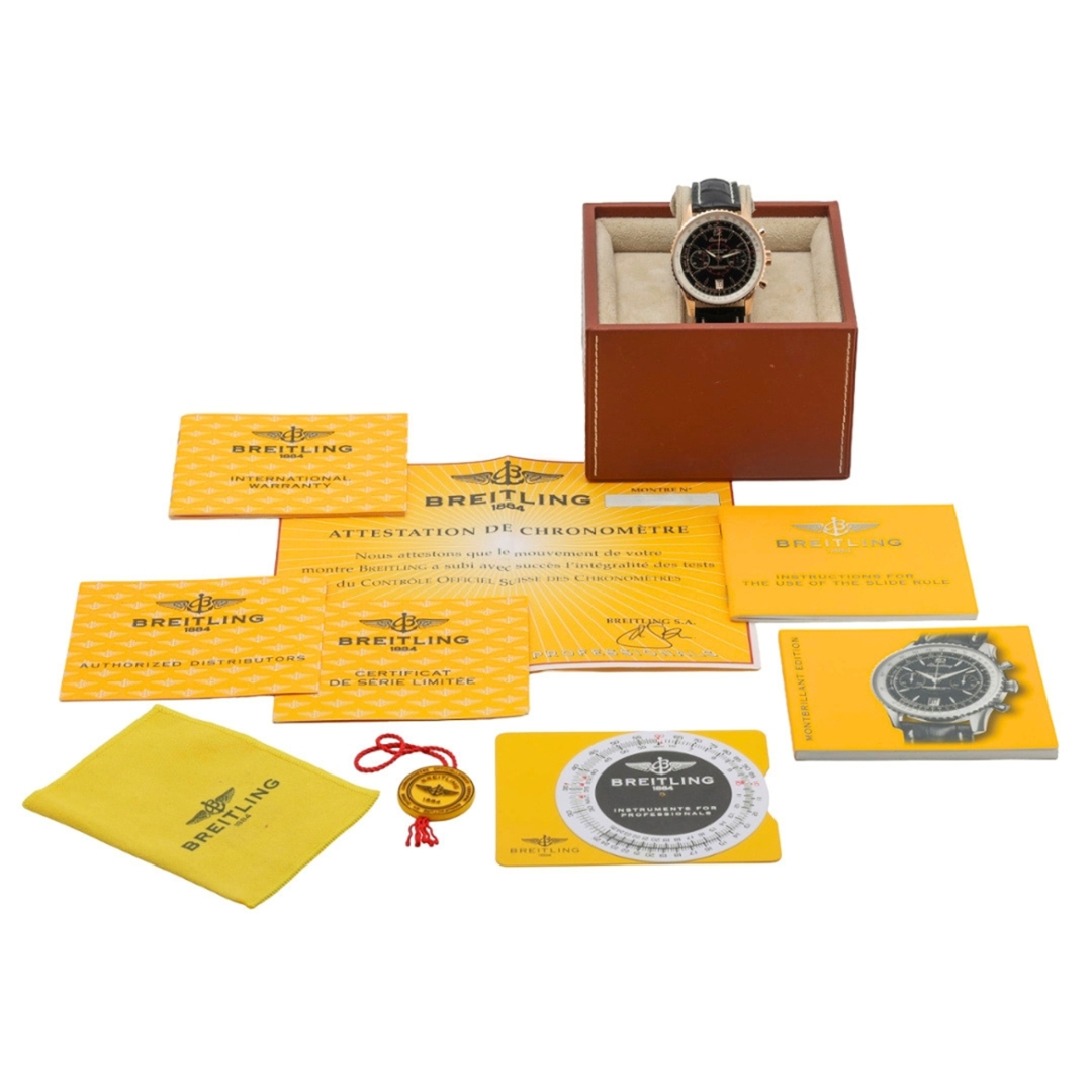A Breitling Navitimer Montbrilliant Edition Watch, Black Leather Strap with an 18ct Rose Gold Case & Clasp on a Black Dial