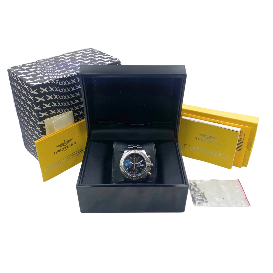 A compelling choice for those seeking a statement piece with proven collectability, the Super Avenger remains one of Breitling’s most distinctive and sought-after designs. Its commanding size, durable construction and complete provenance make it an excellent addition to any serious collection.