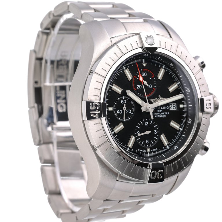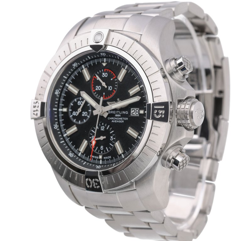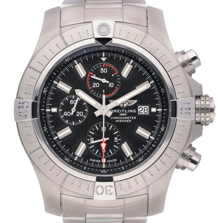 A Breitling Super Avenger Watch, Stainless Steel with a Black Dial.