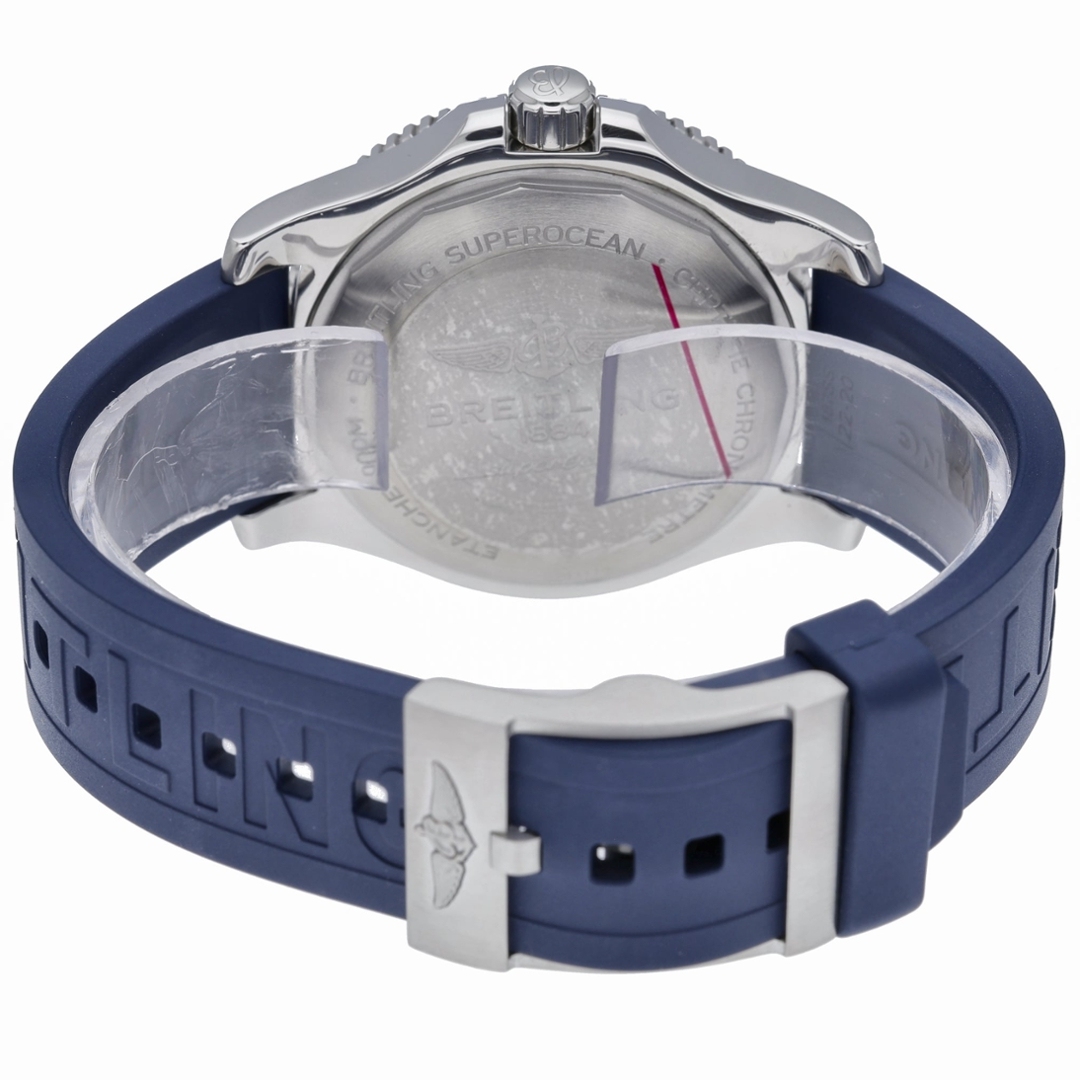 Powered by the Breitling Calibre 17 automatic movement, based on the robust ETA 2824-2, this model offers dependable accuracy and proven durability. Built as an actual tool watch, the Superocean 44 provides water resistance to 1,000 metres, reinforcing its reputation as one of Breitling’s most capable dive watches.
