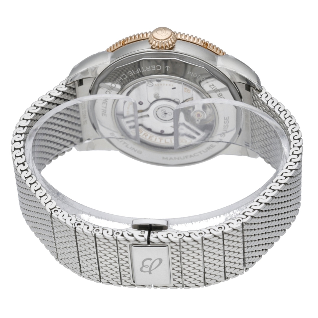 In immaculate condition with partial stickers still intact, this piece delivers exceptional presence on the wrist — from its luxurious rose-gold accents to its refined mesh-style bracelet and crisp dial detailing. With a depth rating of 200m and Breitling’s contemporary performance standards, it offers both everyday versatility and collector appeal.