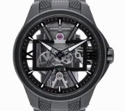 A Bremont MBII Watch, Black Leather & Rubber Strap with a Stainless Steel Case & Clasp on a Black Dial