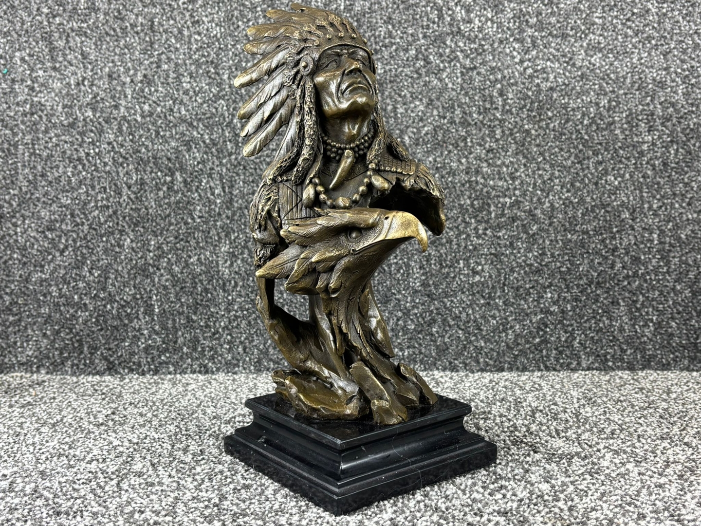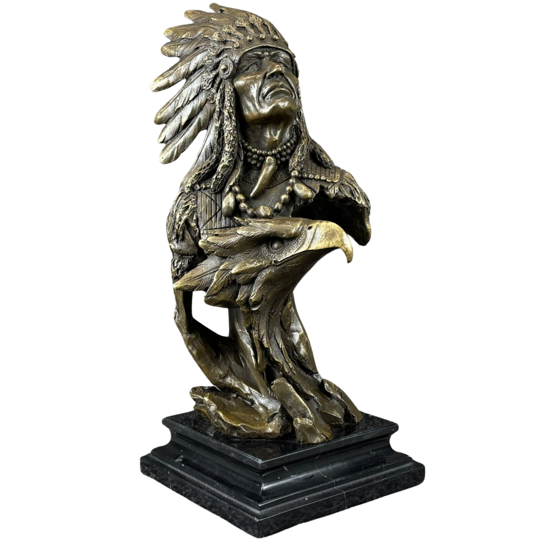 - > Bronze Sculpture of a Native American Chief with an Eagle