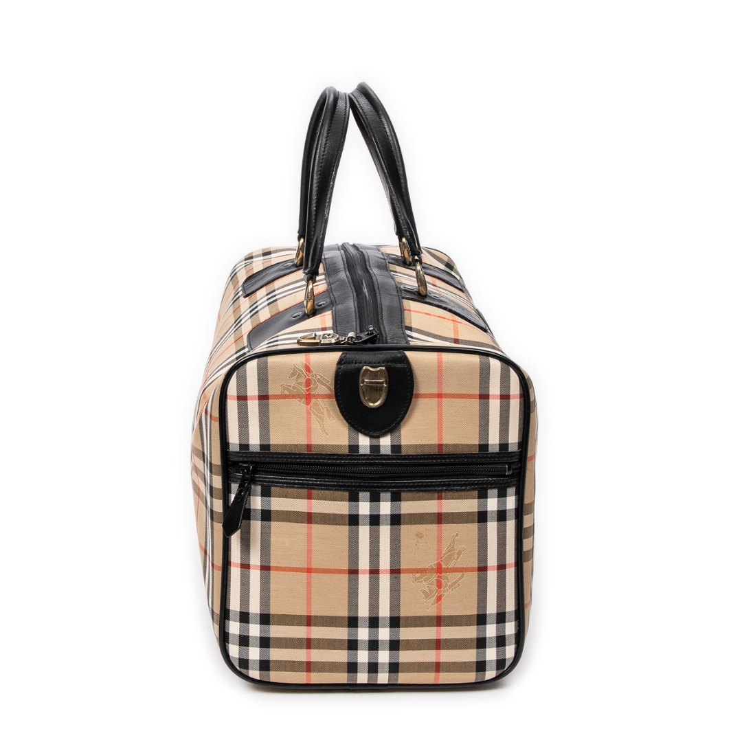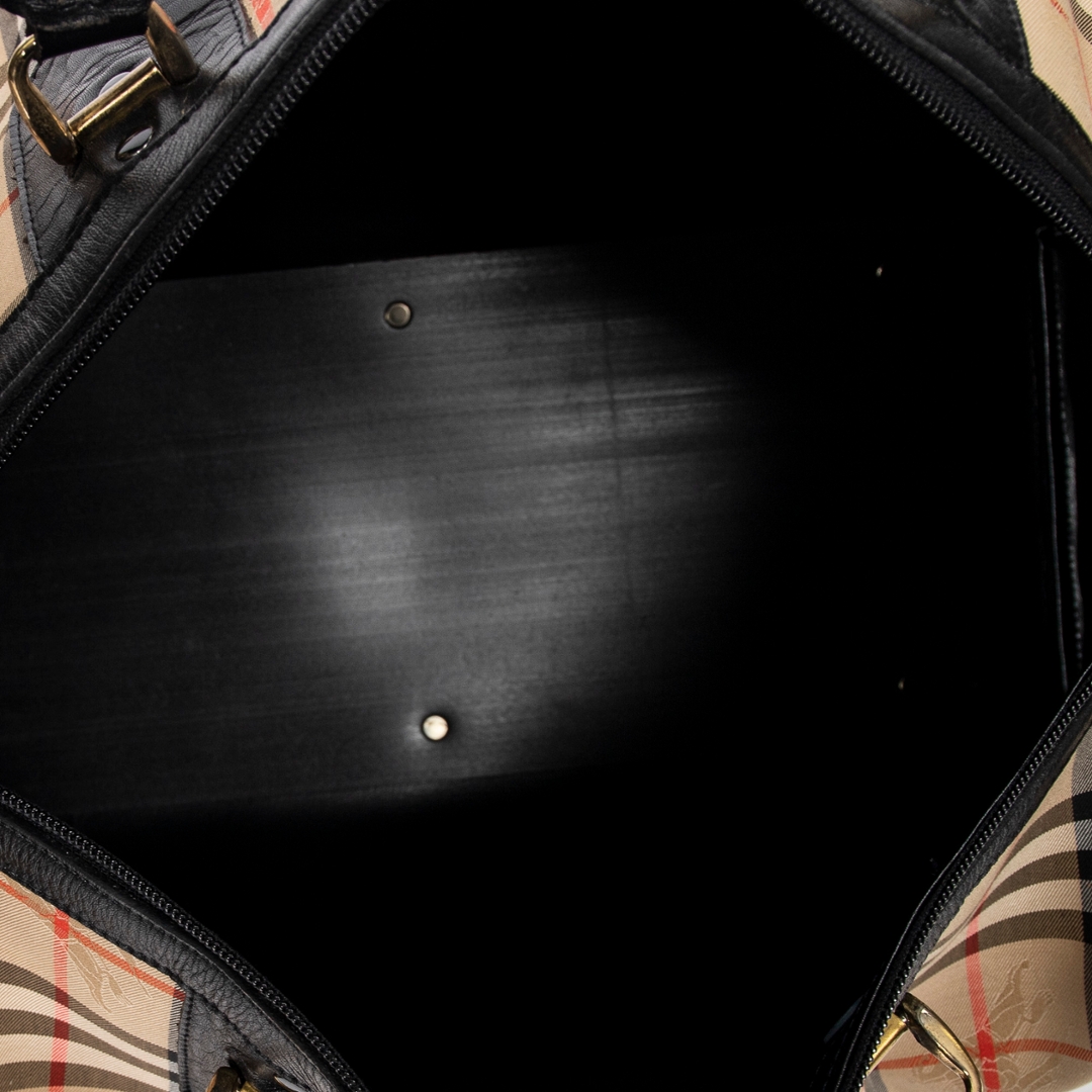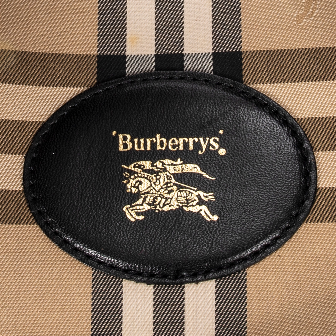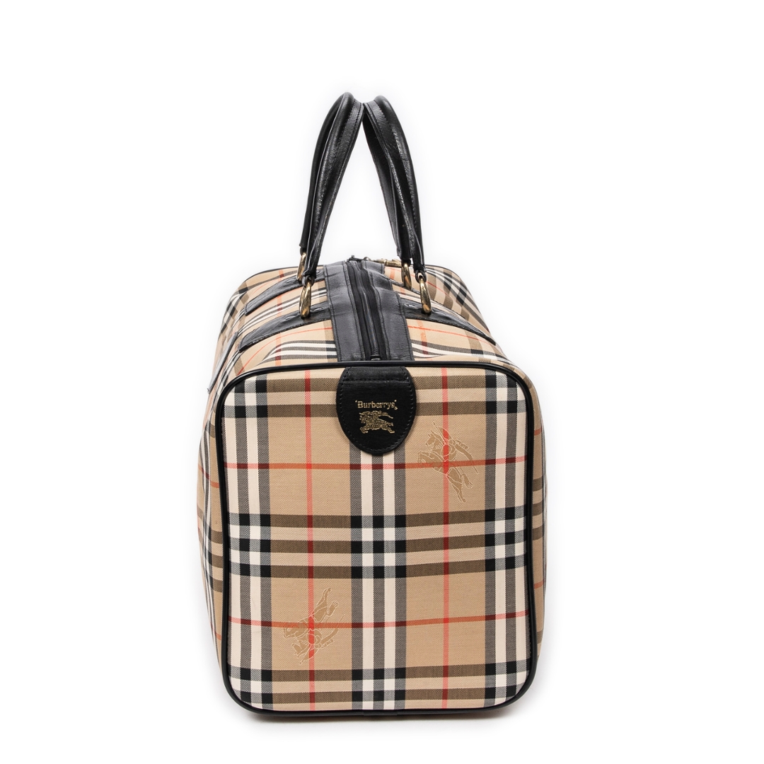 A vintage Burberry beige/black canvas Medium Travel Boston bag with a certificate of authenticity, Approximately 25cm height, 46cm width.
