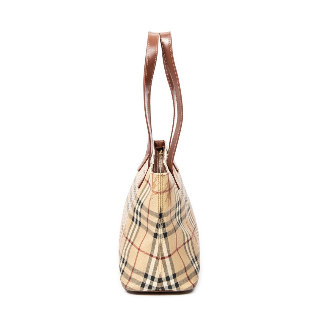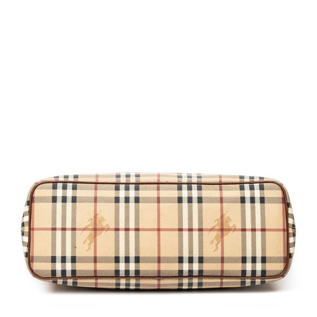 A vintage beige and brown Burberry Zip Tote bag with a certificate of authenticity, Approximately 21.5cm height, 35cm width.