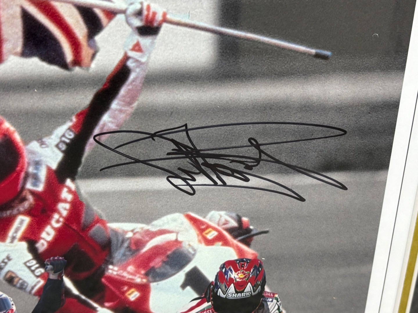 Expertly framed with black, gold, and silver accents that echo the prestige of the sport, this piece is fully authenticated and ready to become the ultimate tribute to a true motorcycling legend. A must-have for fans of superbike history, speed, and championship pedigree.
