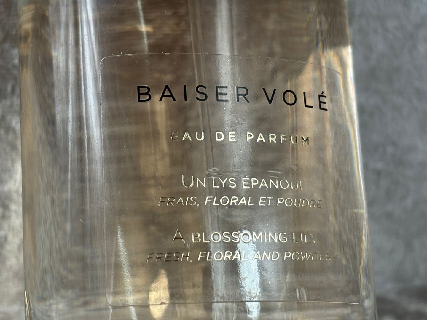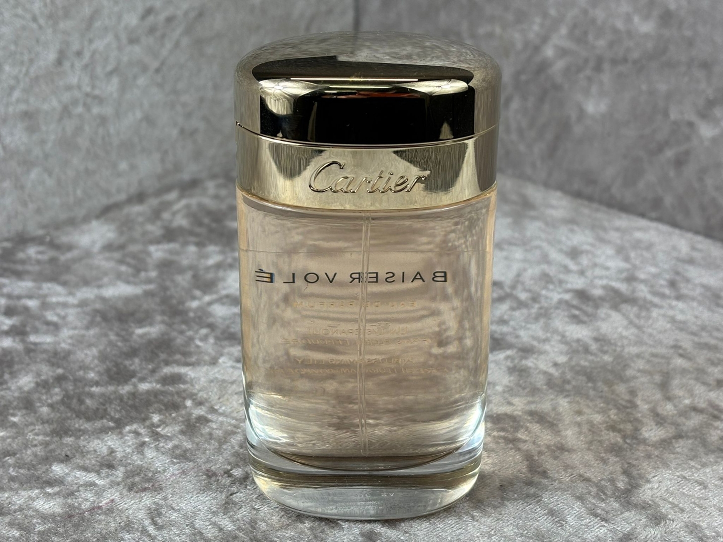 A 100ml bottle of Baiser Volé Eau de Parfum by Cartier,