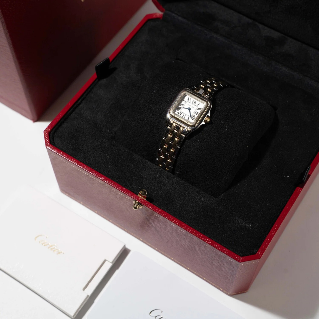 Powered by a quartz movement, delivering reliable and precise timekeeping with minimal upkeep. The simplicity of the movement complements the elegance of the Panthère, making it a practical yet luxurious choice for everyday wear. Its slim profile and fluid bracelet construction ensure both comfort and wearability.