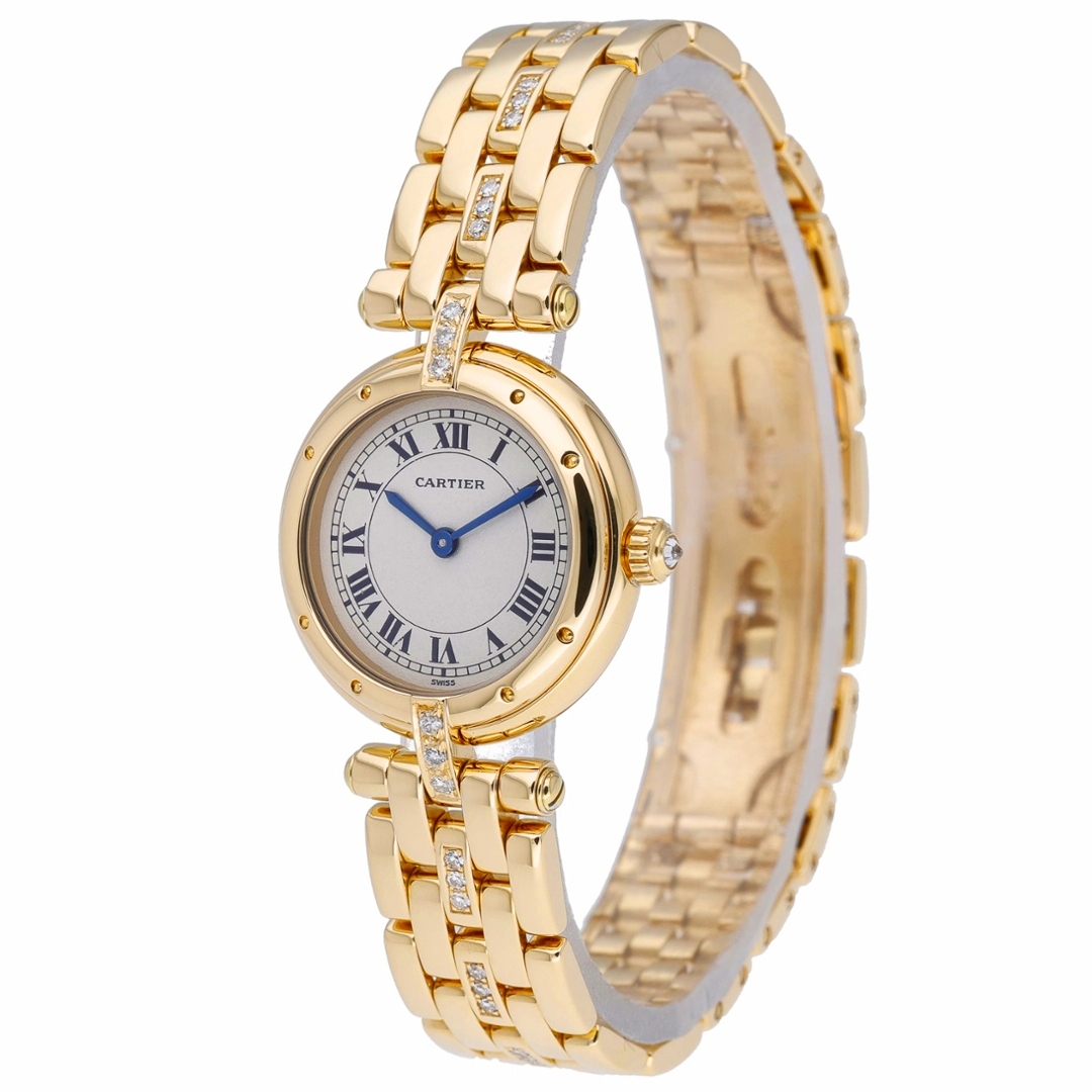 A Cartier Panthère Vendome Watch, Full 18ct Yellow Gold with a Diamond Bracelet and a White Dial.