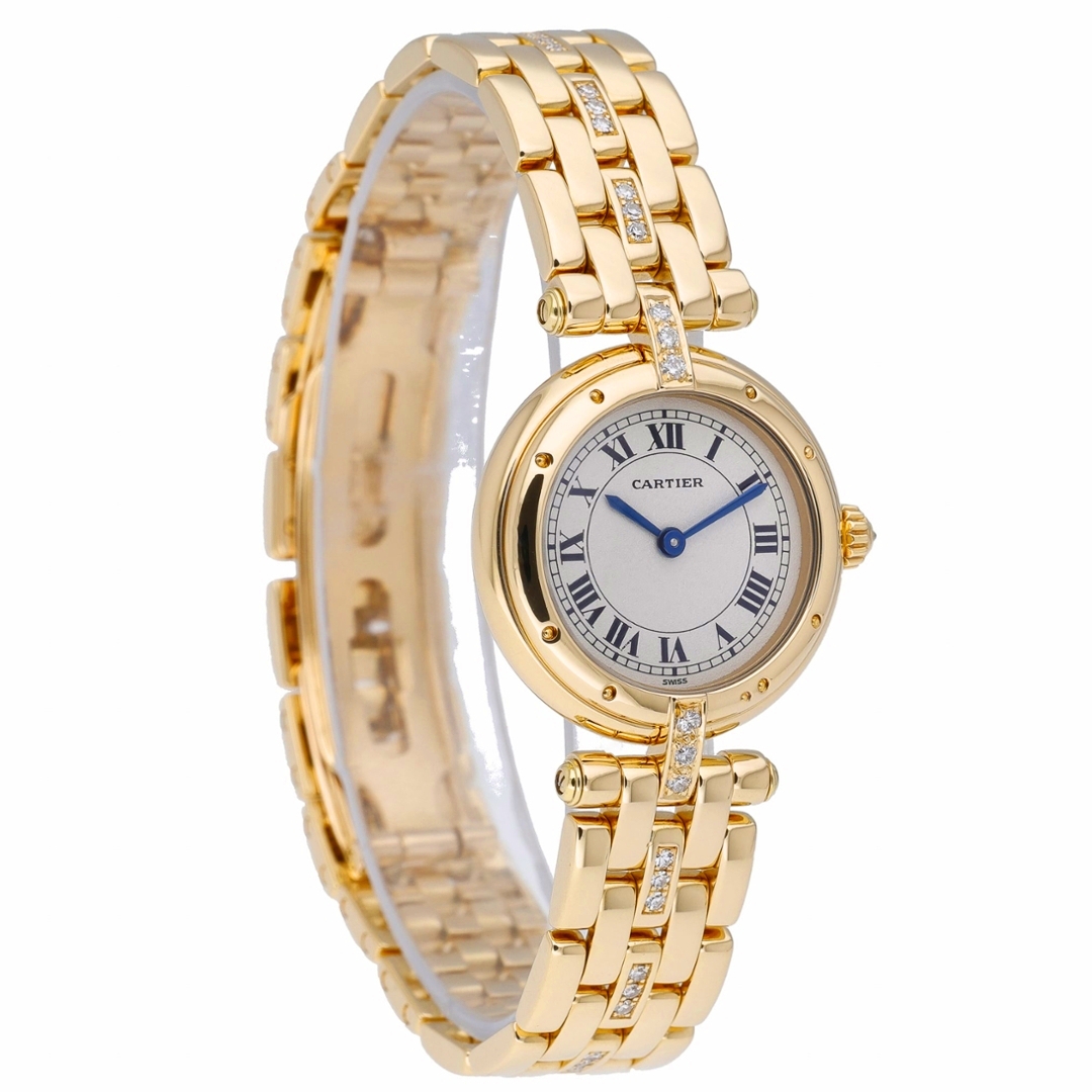 Powered by a reliable quartz movement, this piece is designed for effortless everyday wear while maintaining the elevated presence expected of a solid gold Cartier. The Vendôme case shape softens the traditional Panthère aesthetic, giving the watch a graceful, jewellery-led feel on the wrist.