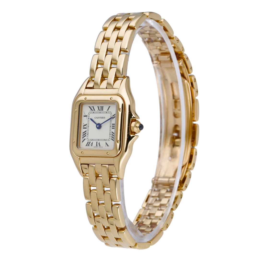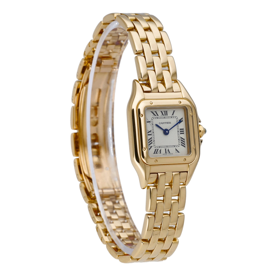 A Cartier Panthère Watch crafted entirely in 18ct yellow gold, showcasing one of Cartier’s most recognisable and enduring jewellery watch designs. First introduced during the 1980s, the Panthère quickly became a symbol of refined elegance, blending the sophistication of fine jewellery with the precision and reliability of Swiss watchmaking.