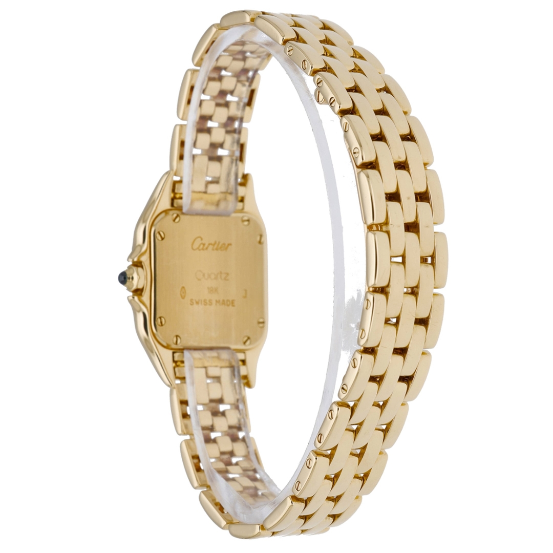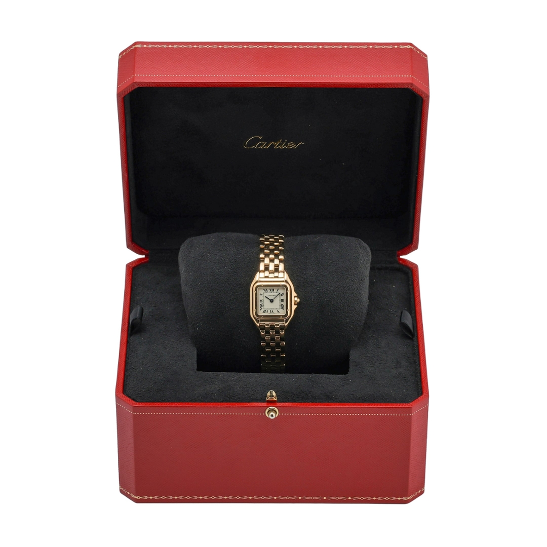 Completing the design is the iconic Panthère bracelet, crafted from solid 18ct yellow gold with a smooth multi-link construction that drapes fluidly around the wrist like a piece of fine jewellery. Elegant, timeless, and instantly recognisable, the Cartier Panthère remains one of the maison’s most celebrated creations.