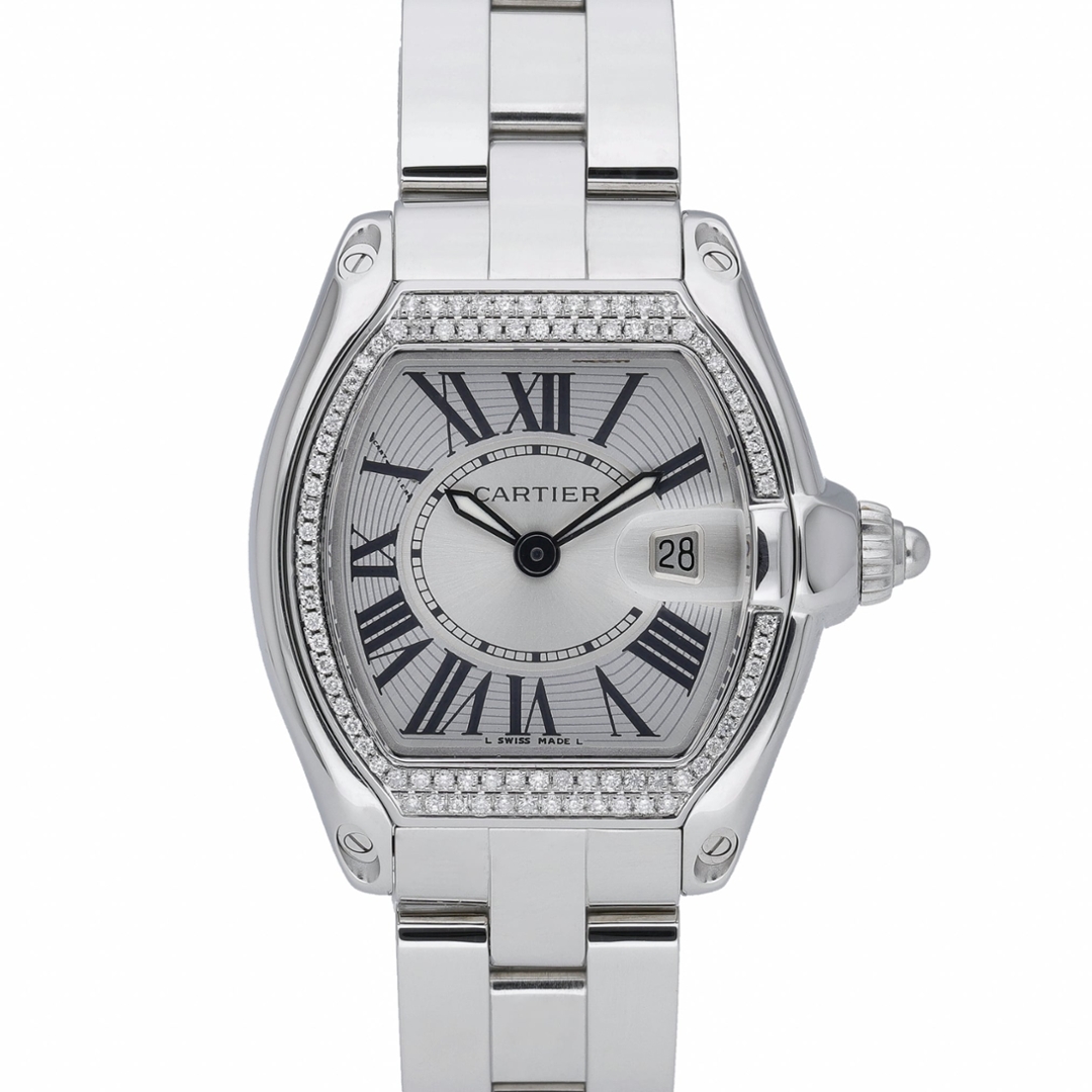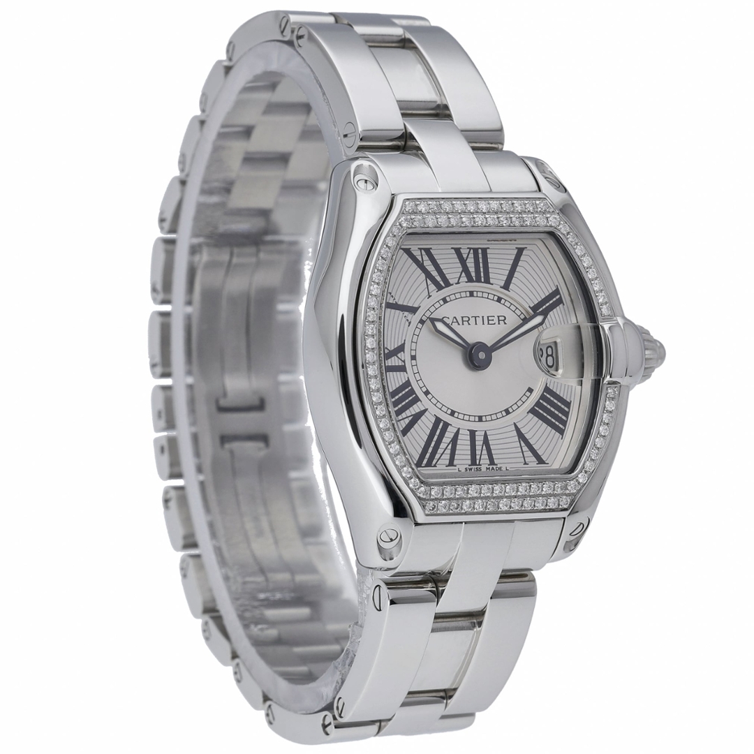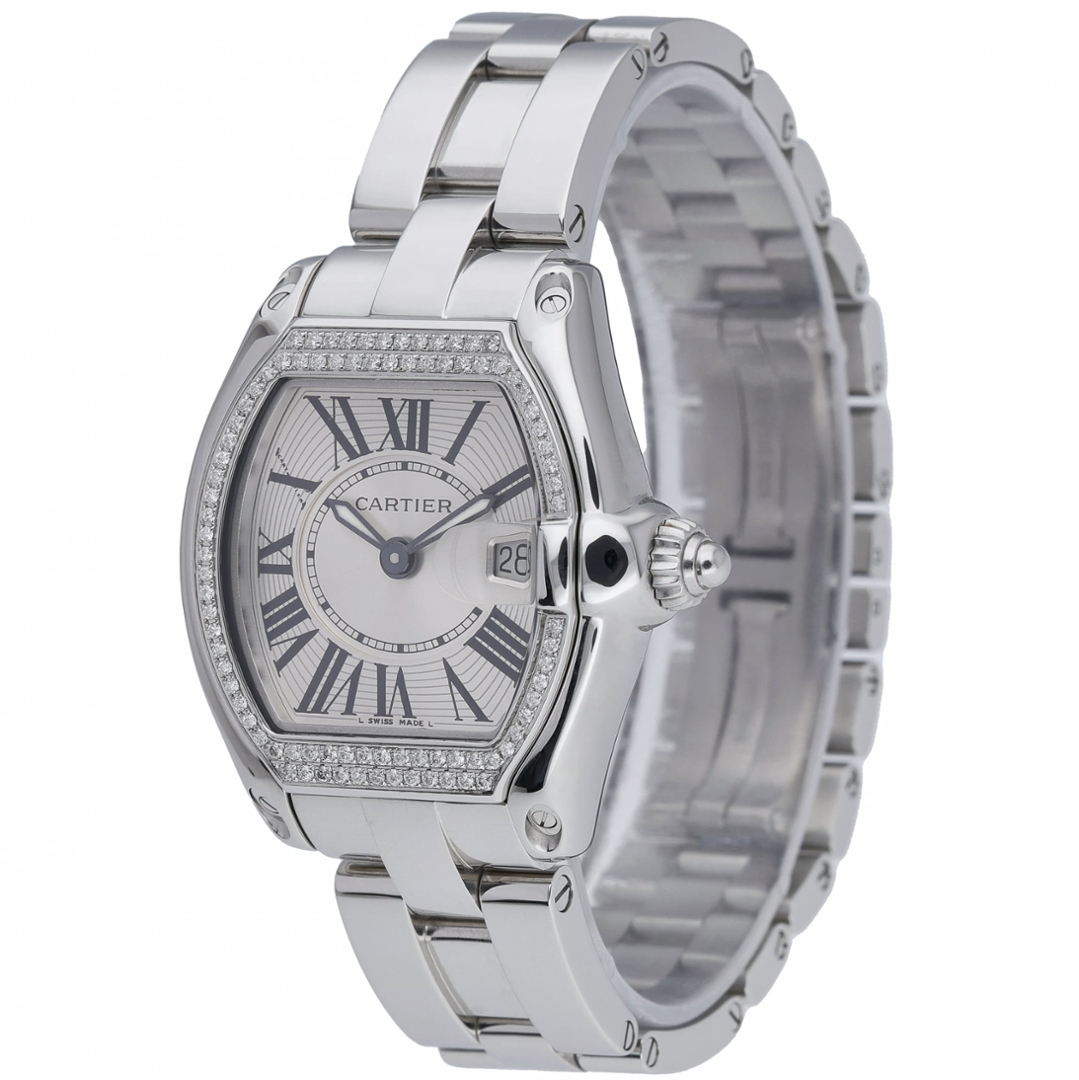 A Cartier Roadster Watch, Stainless Steel with an Afterset Diamond Bezel on a Silver Dial