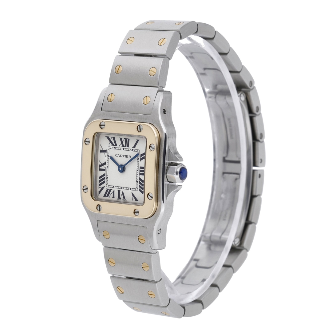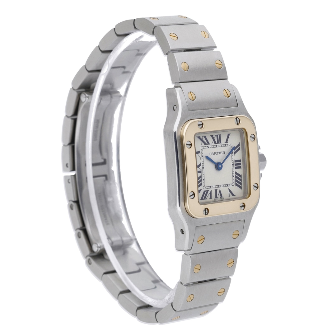 A Bi-Metal Cartier Santos Galbee Watch, Stainless Steel & 18ct Yellow Gold on a White Dial