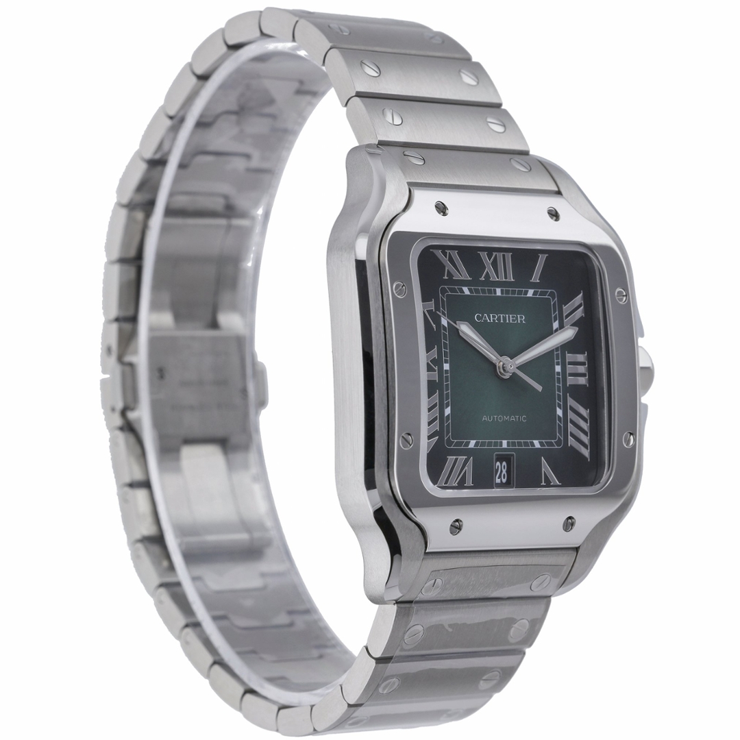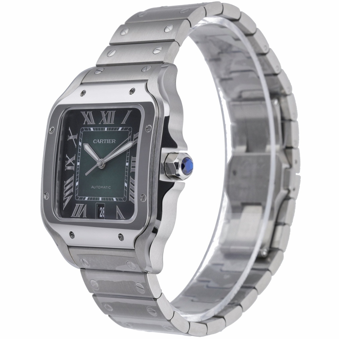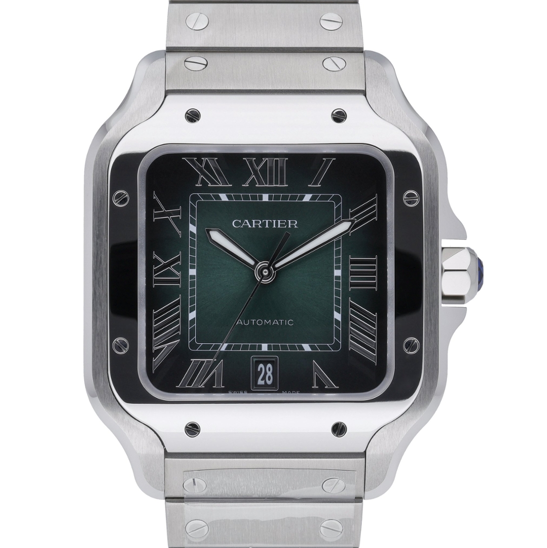 A Cartier Santos Watch, Stainless Steel on a Green Dial