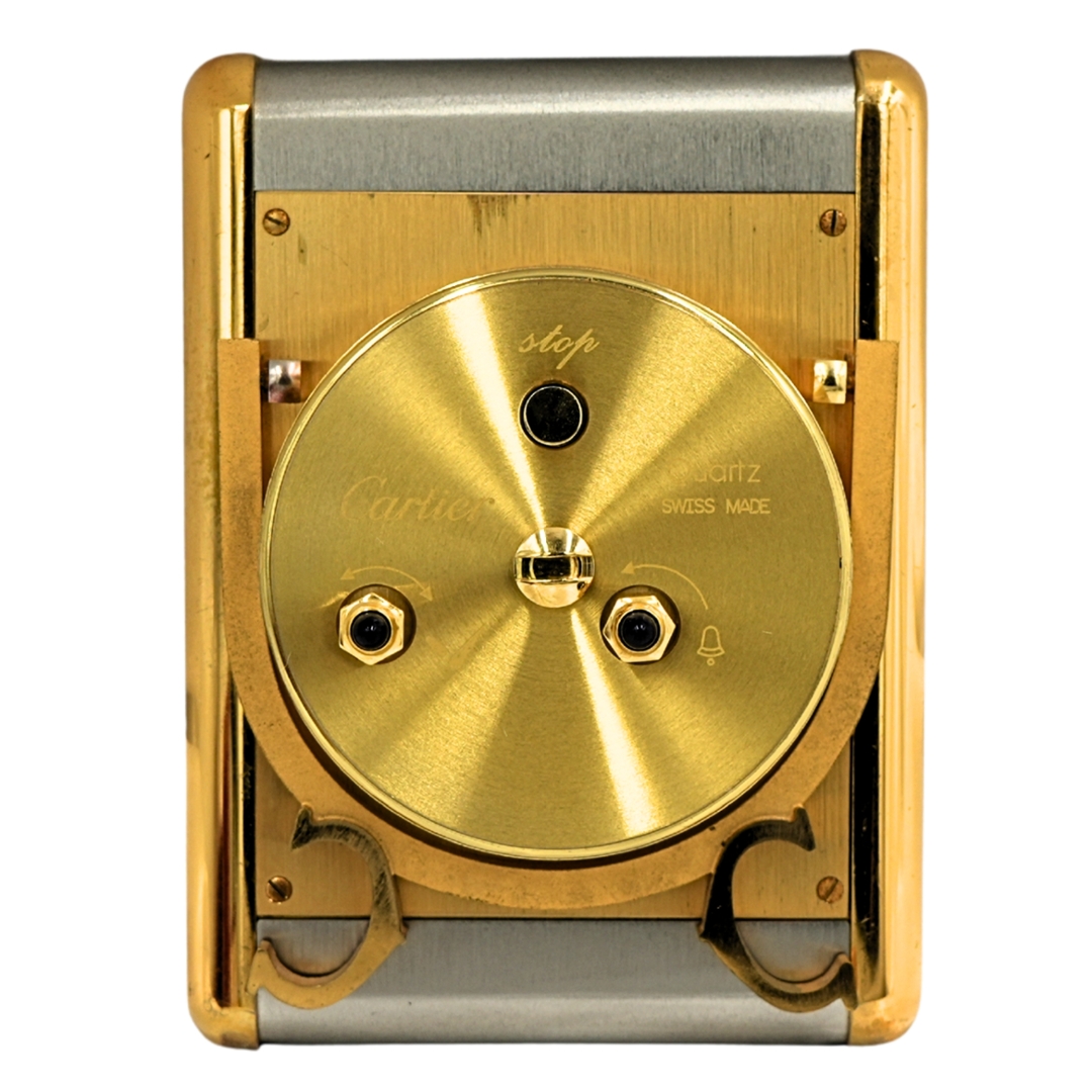 The clock is powered by a Swiss-made quartz alarm movement, providing reliable timekeeping and practical alarm functionality. Cartier desk clocks of this period were produced in far smaller numbers than wristwatches, and their mechanical quality and design continuity with Cartier’s most famous models have driven increasing collector interest in recent years.