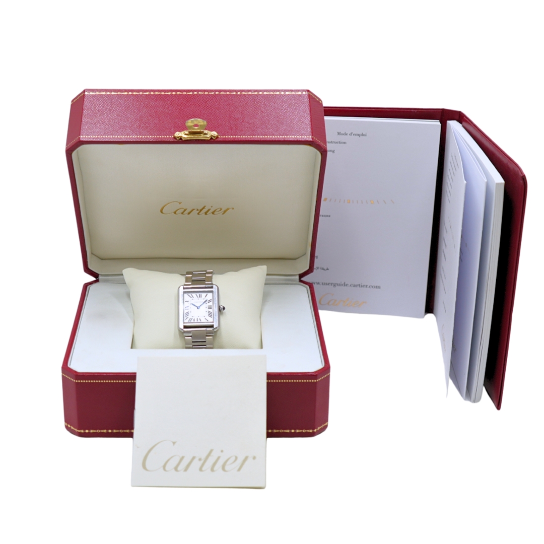 Powered by a Cartier quartz movement, this timepiece offers exceptional accuracy and reliability with minimal maintenance requirements. The scratch-resistant sapphire crystal protects the dial, ensuring durability, while the stainless steel bracelet provides a comfortable and stylish fit. With its effortless charm and timeless appeal, this Cartier Tank Solo is a perfect companion for formal occasions and everyday wear.
